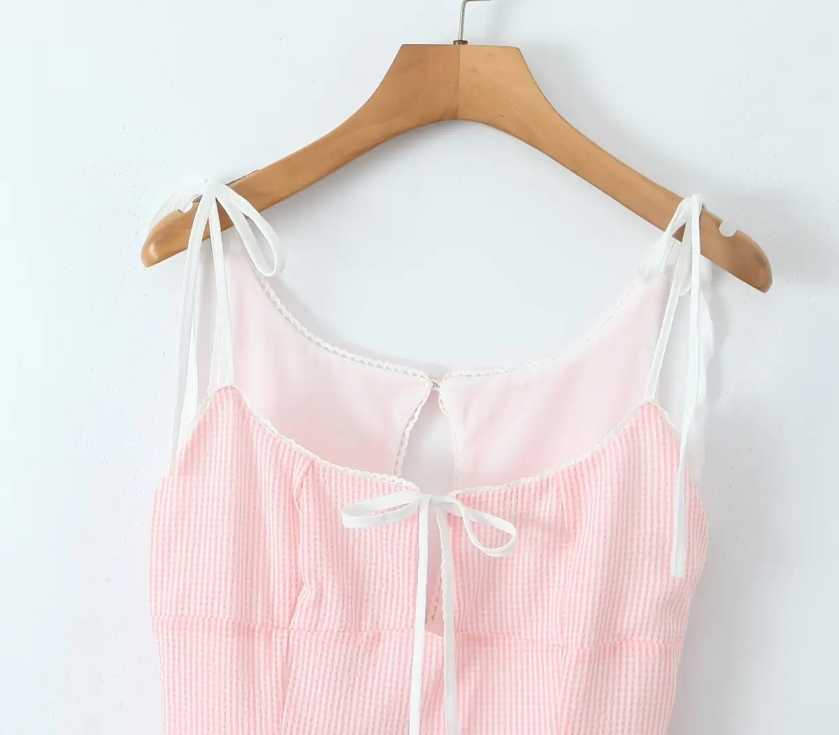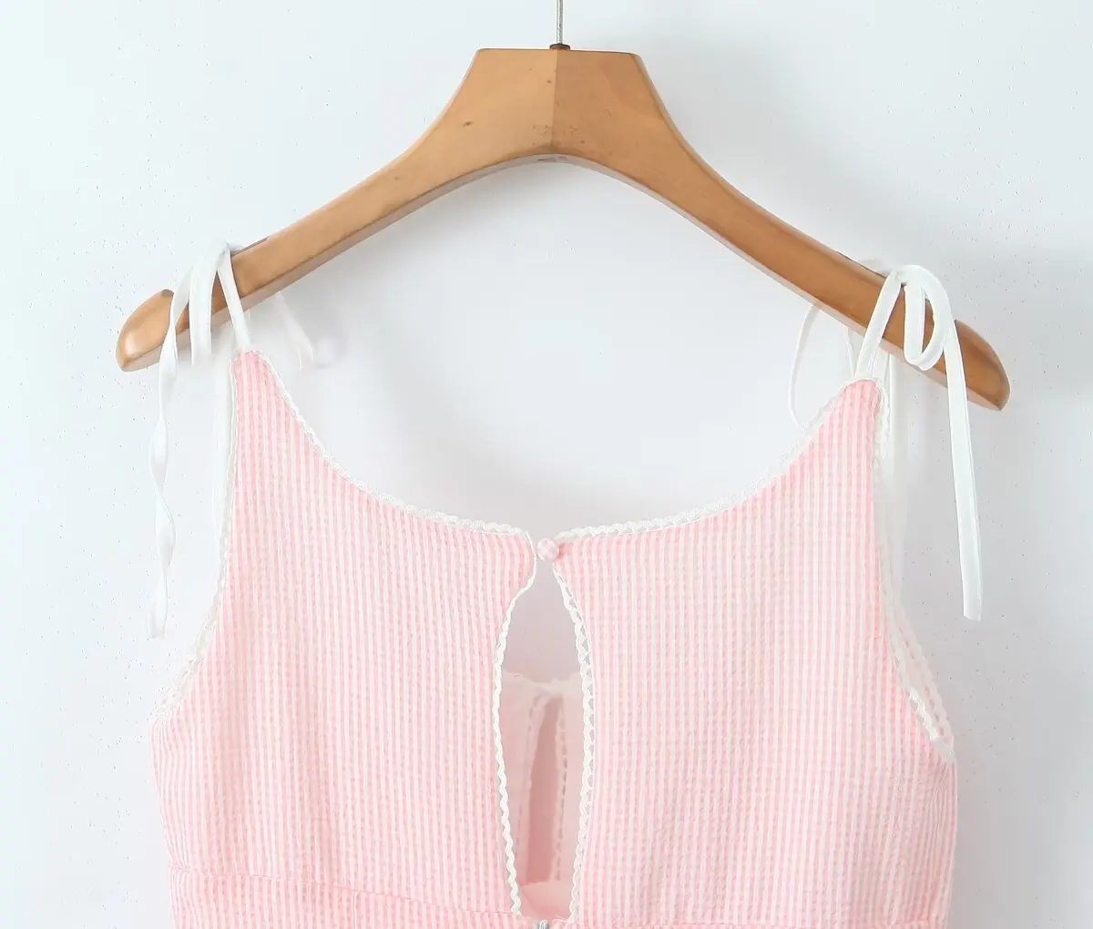 Summer Women White Mesh Patchwork Pink Striped Sling Dresses Sexy Thin Straps O