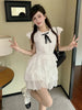 Sweet Chic Bow White Dress Women Slim Fashion Flying Sleeve Cute Mini Dress Casual O Neck Female Elegant Lace A Line Dress