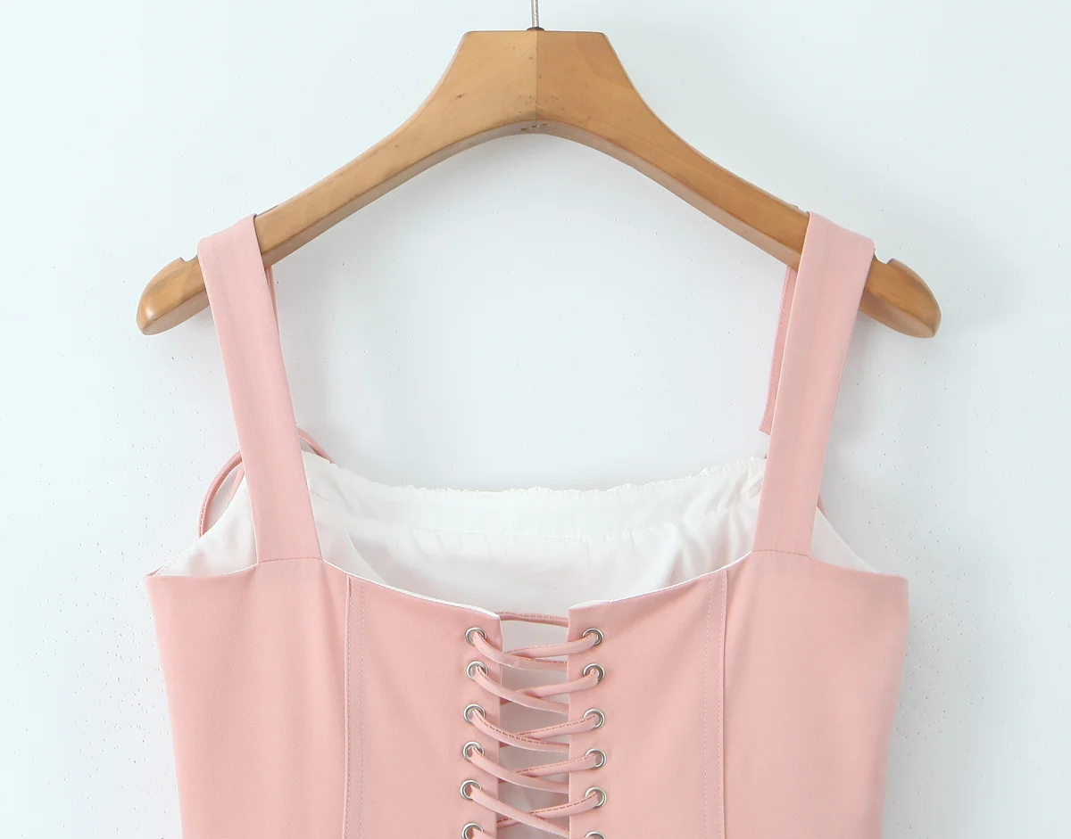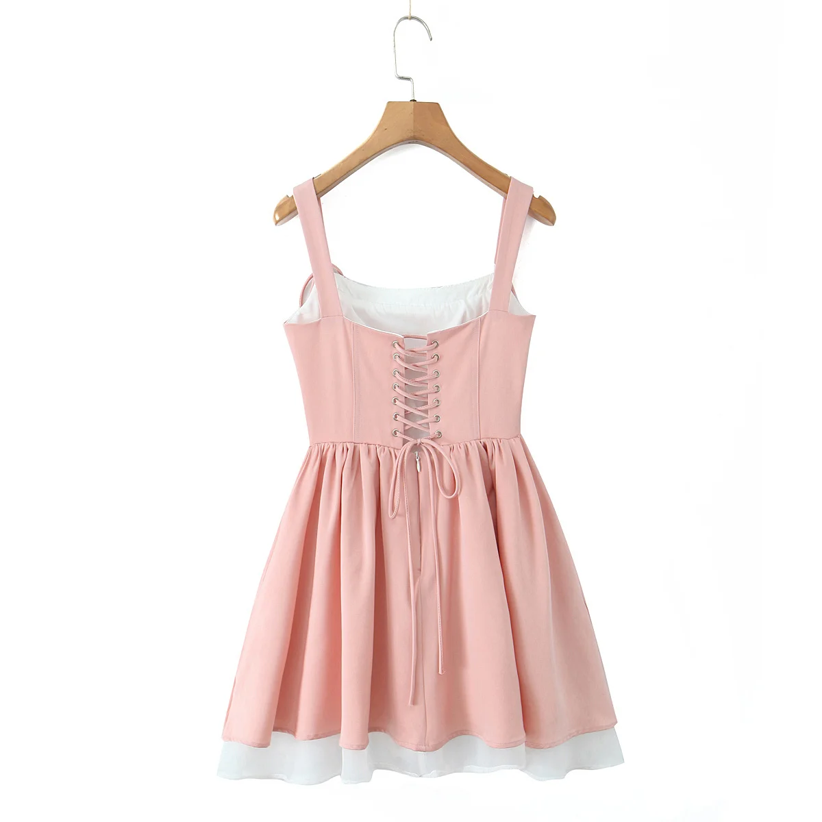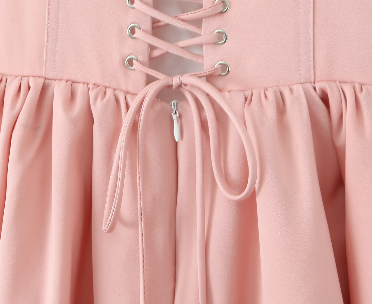 Sweet Elegant Girl Lace Up Back Pink Princess Mini Dress Women Sexy Low Waist Slim