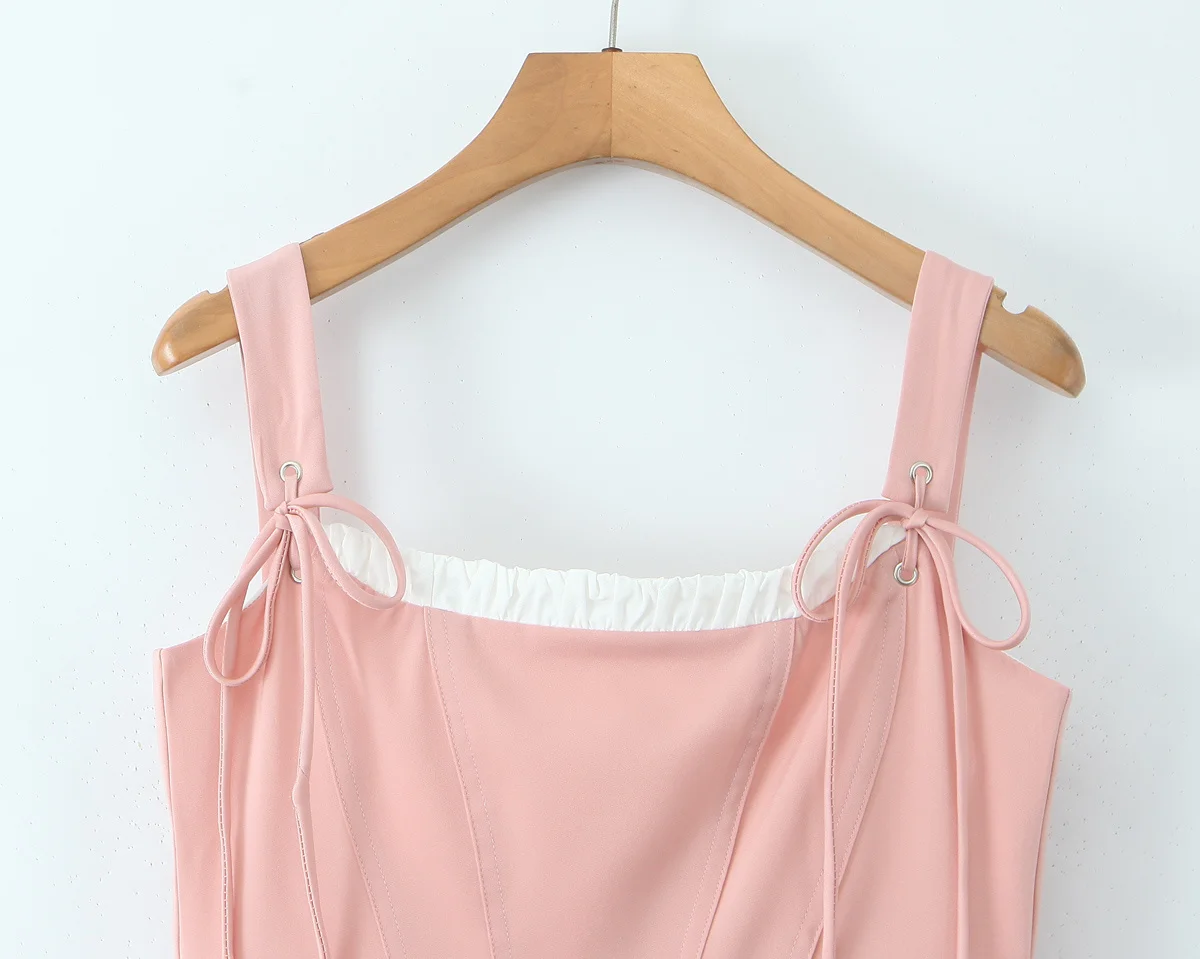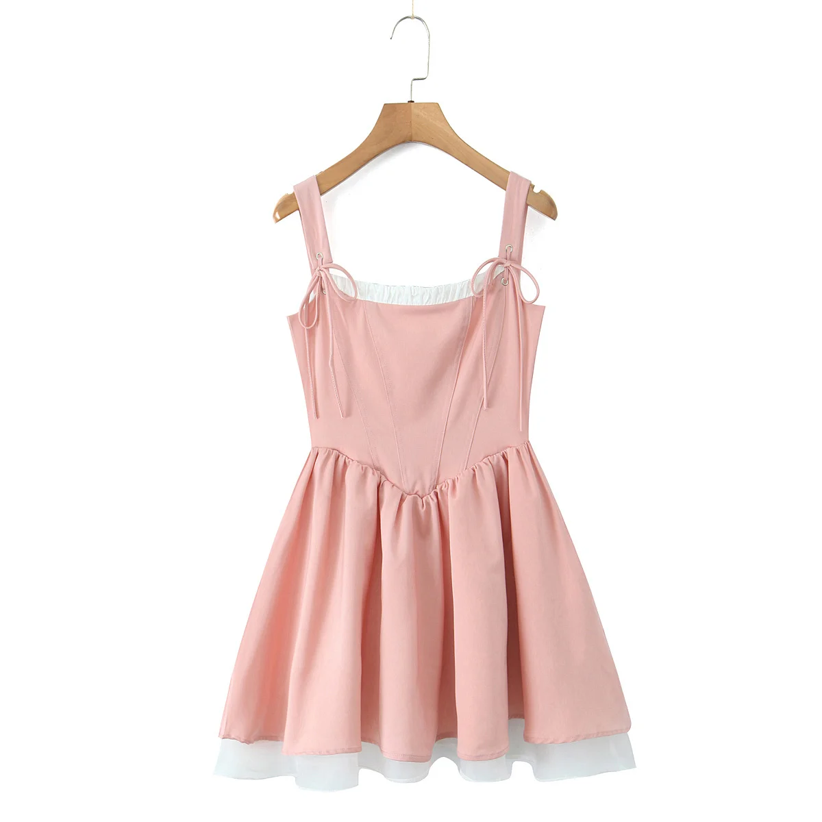 Sweet Elegant Girl Lace Up Back Pink Princess Mini Dress Women Sexy Low Waist Slim Birthday Party Dresses Summer Robe