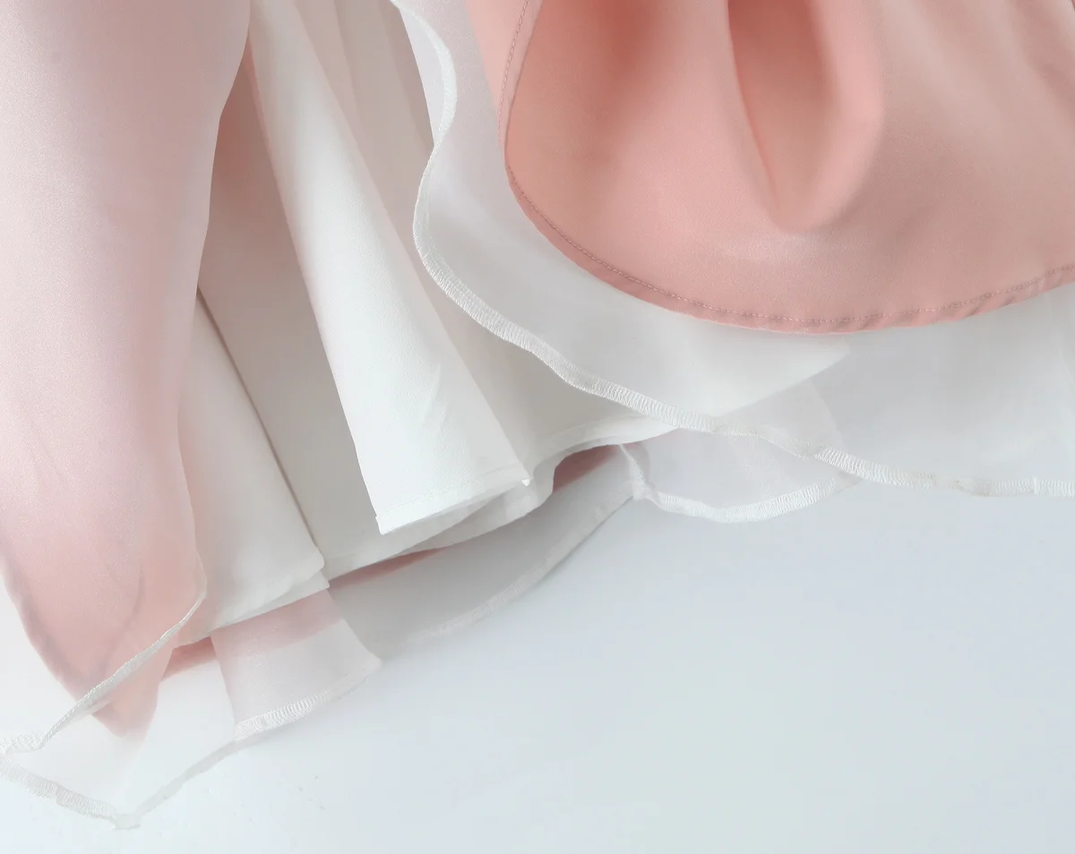 Sweet Elegant Girl Lace Up Back Pink Princess Mini Dress