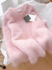 Sweet Elegant Pink Sweater Women Loose Faux Mink Cashmere Knitted Jumpers Soft Vintage Long Sleeve O Neck Japan Cute Tops