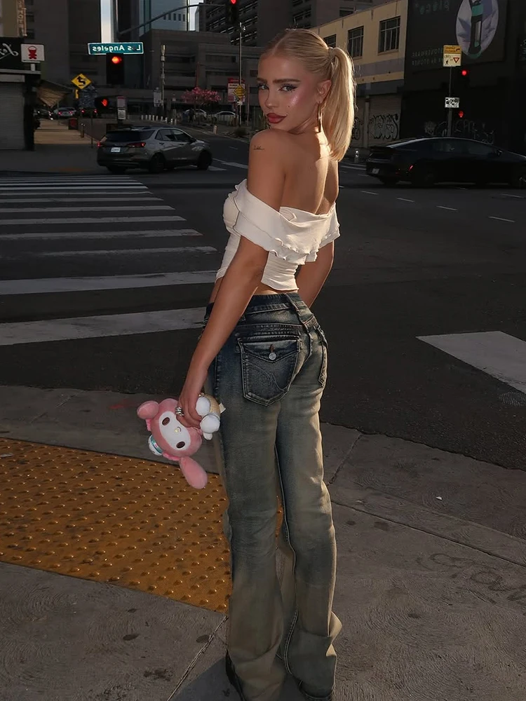 Sweet One Shoulder Mini Tops Women Kink Folds Collar Girly Skinny Backless Street Versatile Summer Trend Simple Clothes