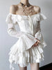 Sweet Ruffle Dress Women Y2K Sexy Off Shoulder Lace Up Long Sleeve Mini Dress Fashion Irregular Party Club Vestidos Mujer