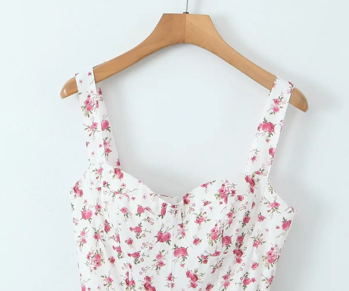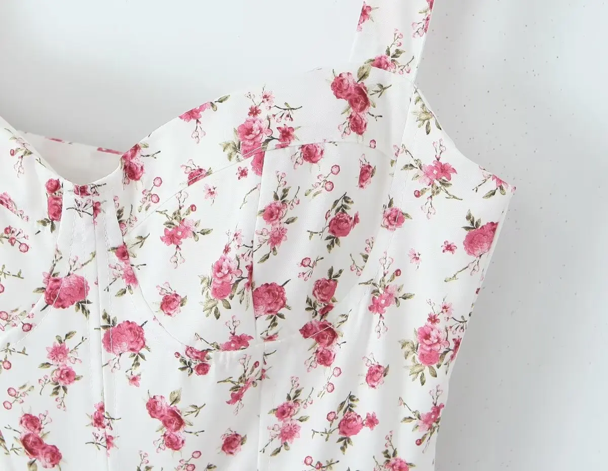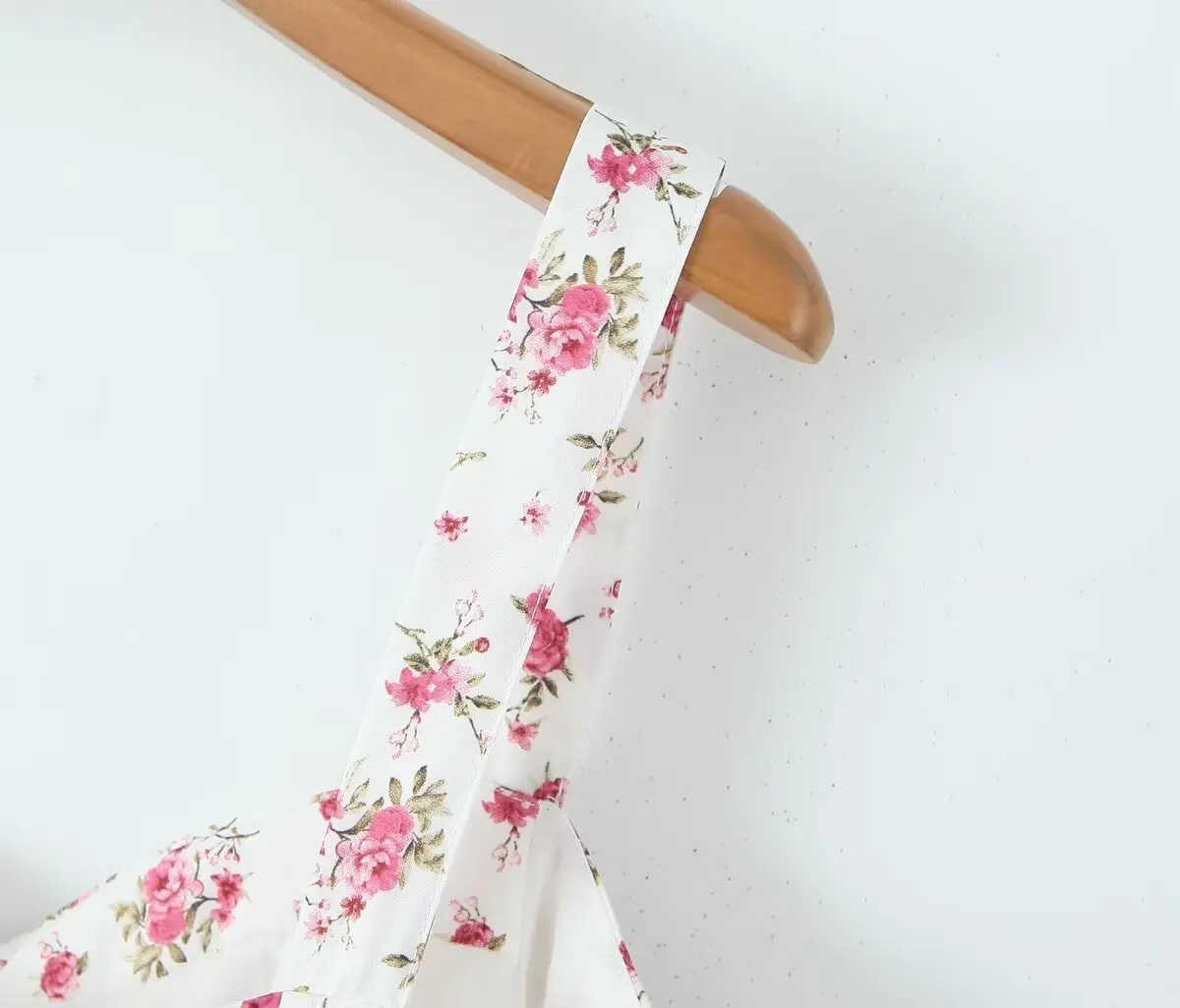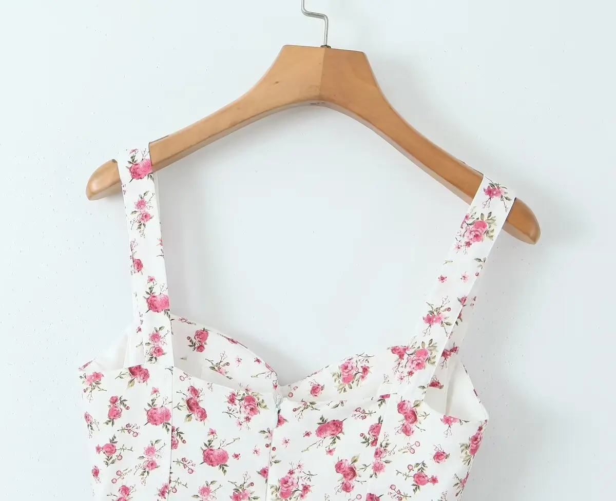 Sweet Women Floral Print Slim Mini Dress Cute Spaghetti Strap Chic Backless Holiday Party Dresses Summer Beautiful Robe
