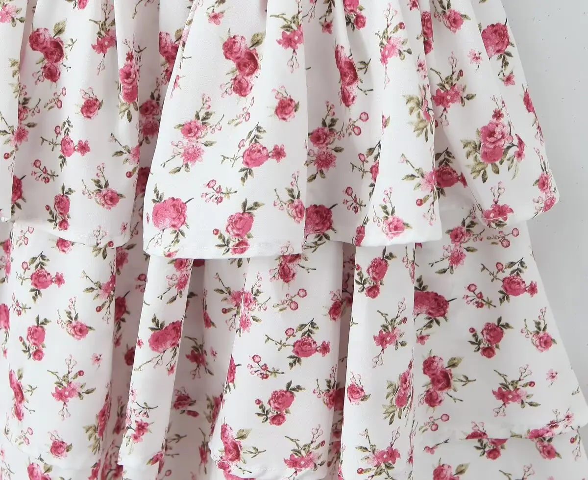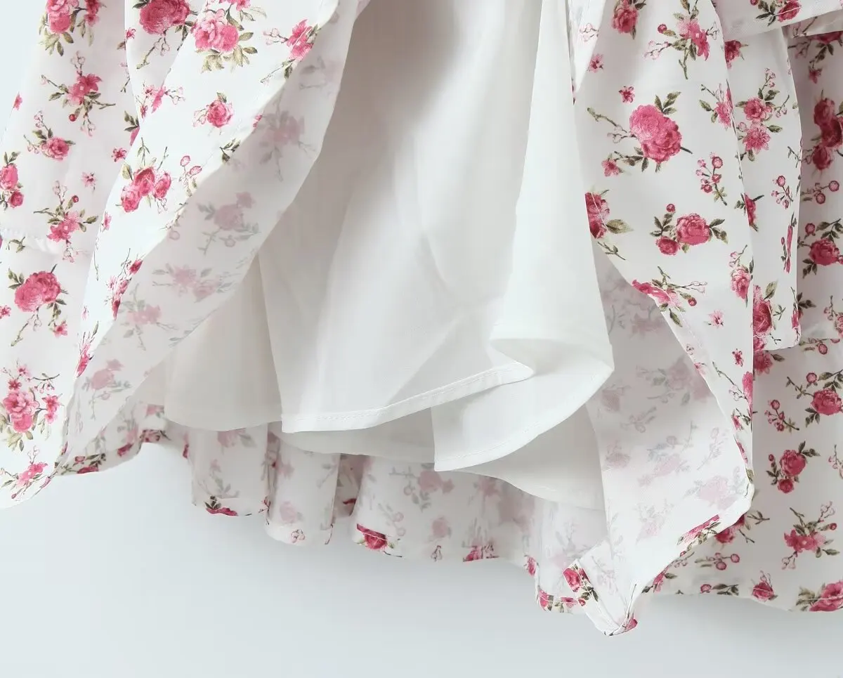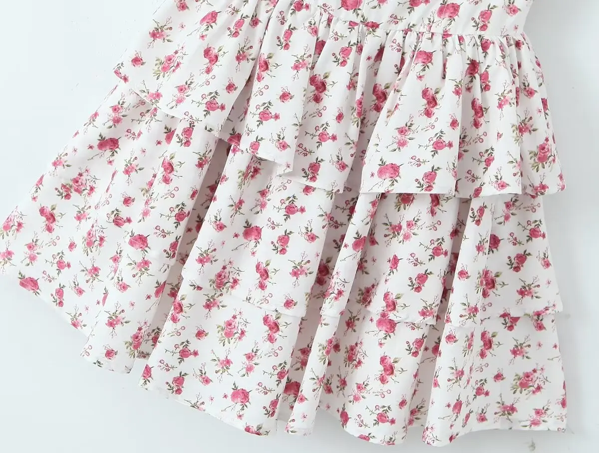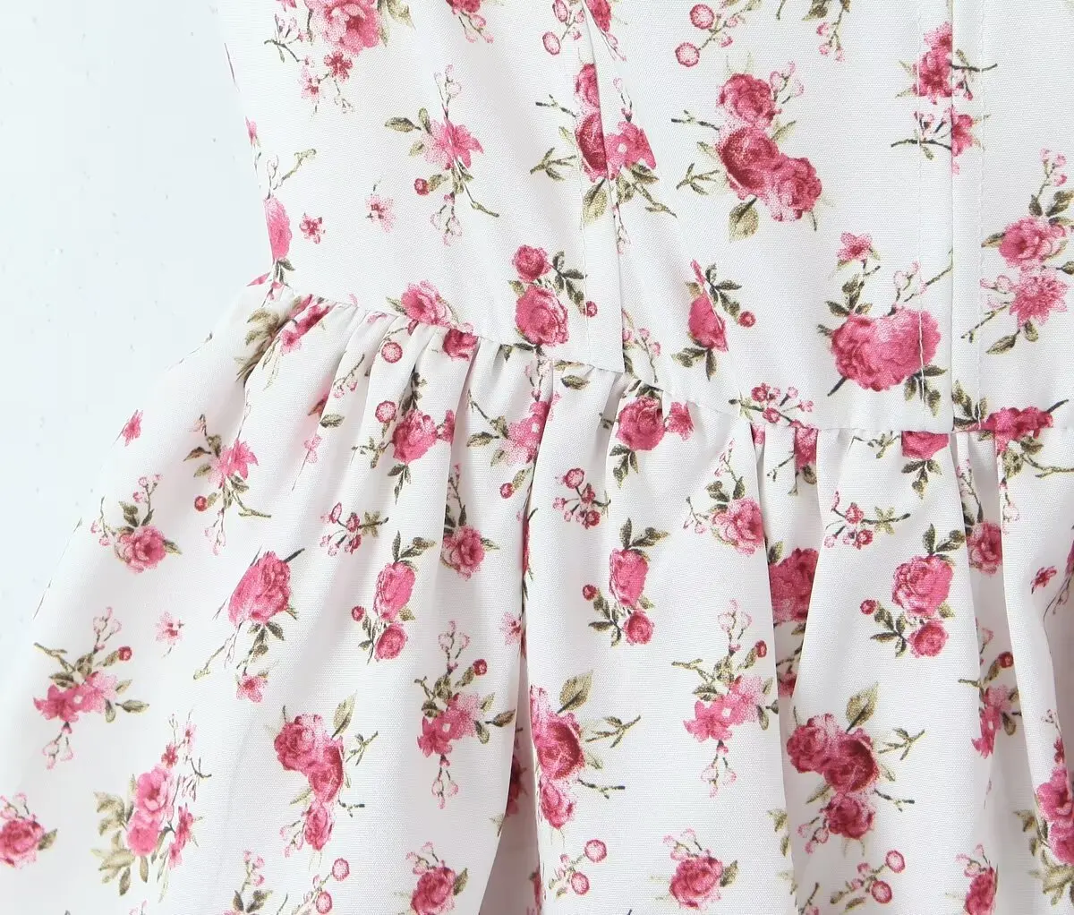 Sweet Women Floral Print Slim Mini Dress Cute Spaghetti Strap Chic Backless Holiday Party Dresses Summer Beautiful Robe