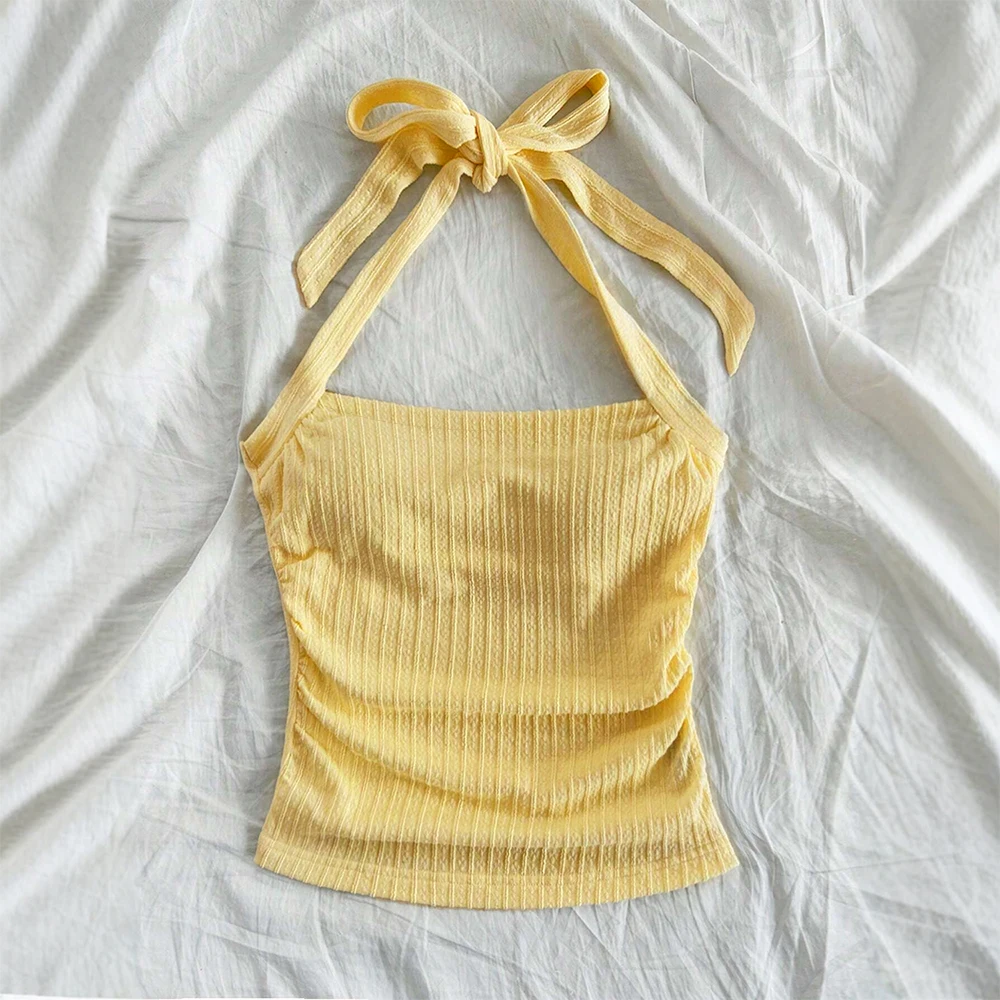 Tanks Spring Summer Korean Fitting Slim Plain Off Shoulder Halter Neck Casual Tanks For Women