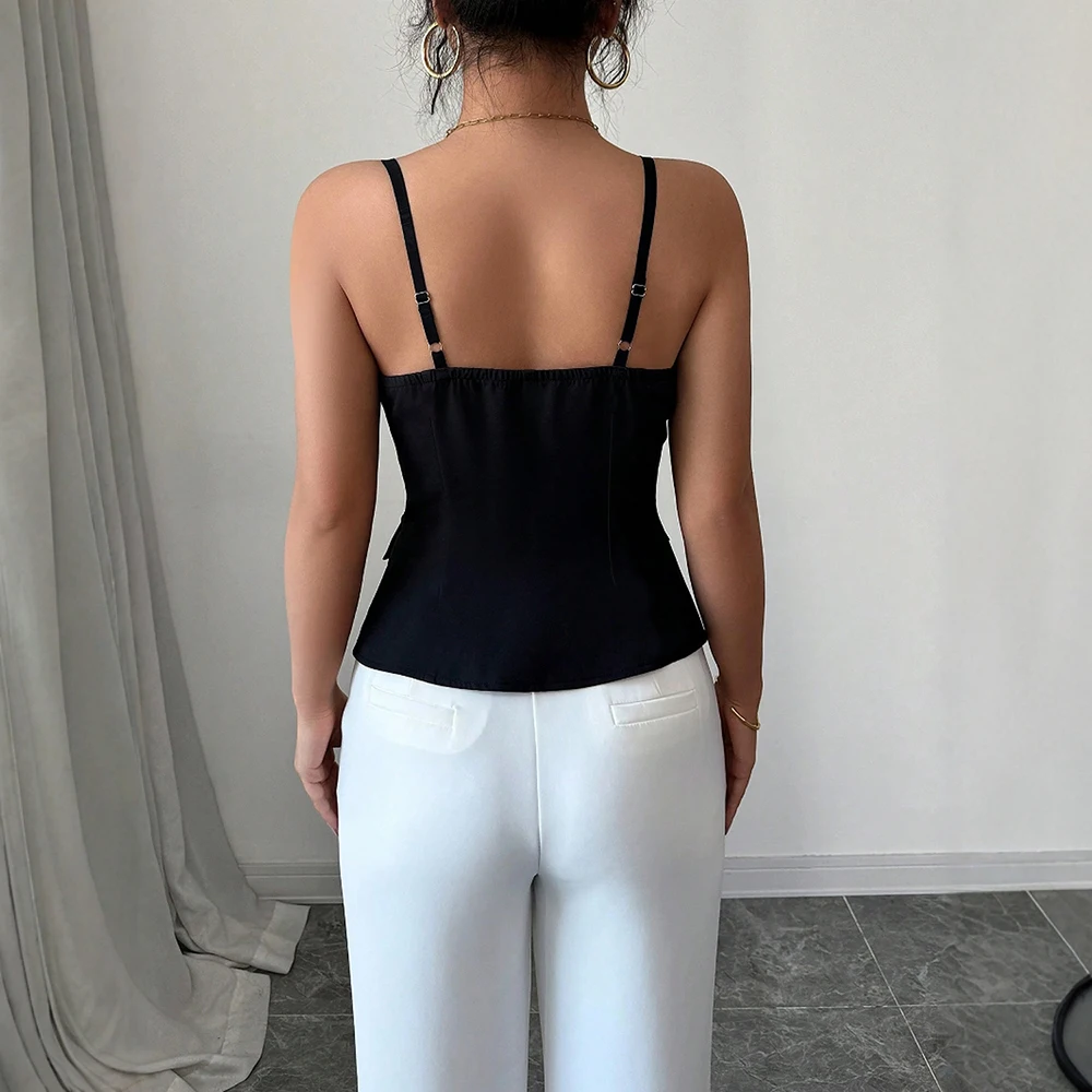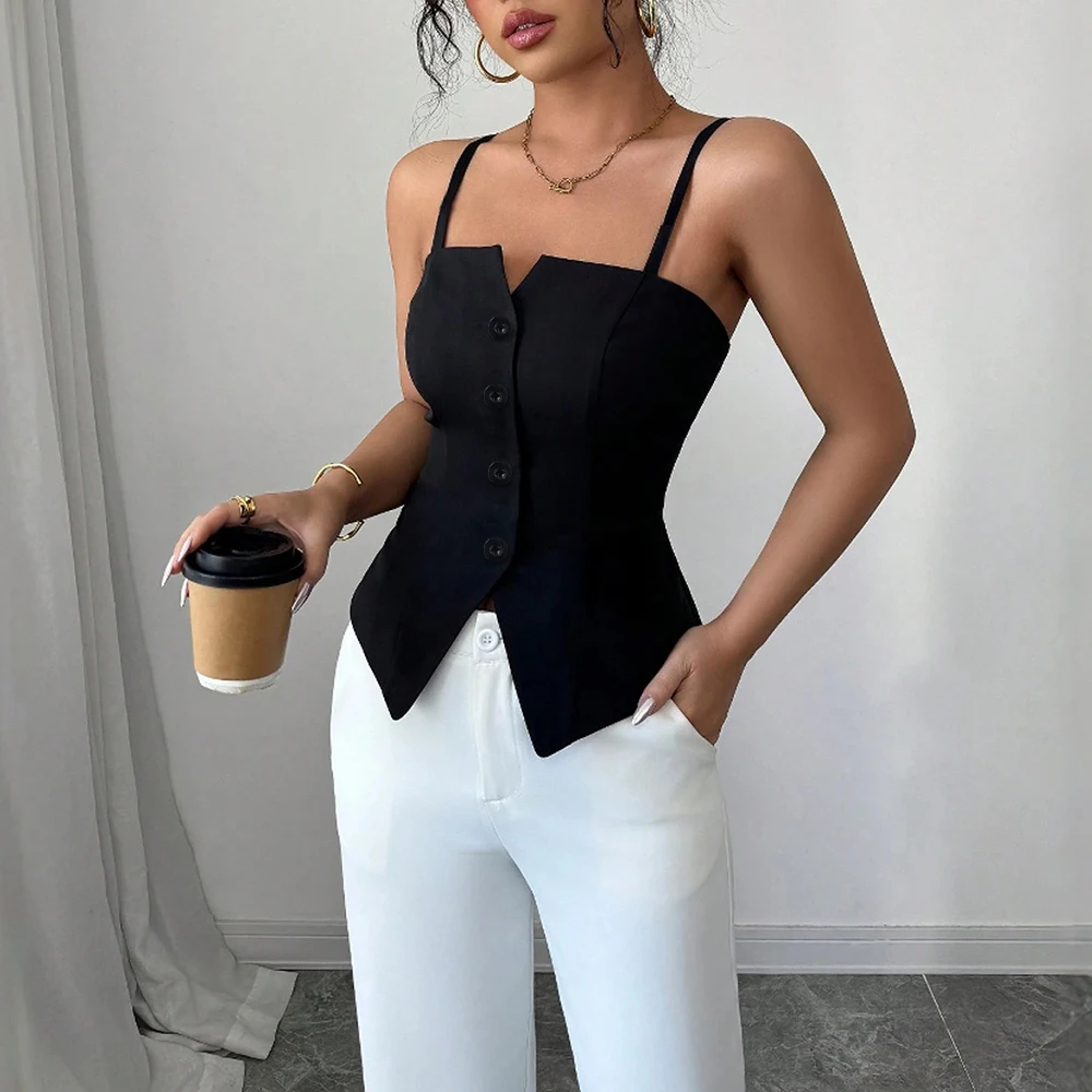 Tanks Spring Summer Skinny Fit Korean Single Breasted Sleeveless Square Neck Fashion Tanks For Women