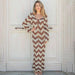Autumn New Lace Up Hollow Sexy Beach Cover Up Dress Women's Stripled Long Sleeve Slim Elegant Knitted Maxi Dress V Neck