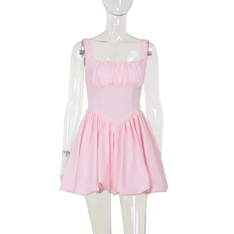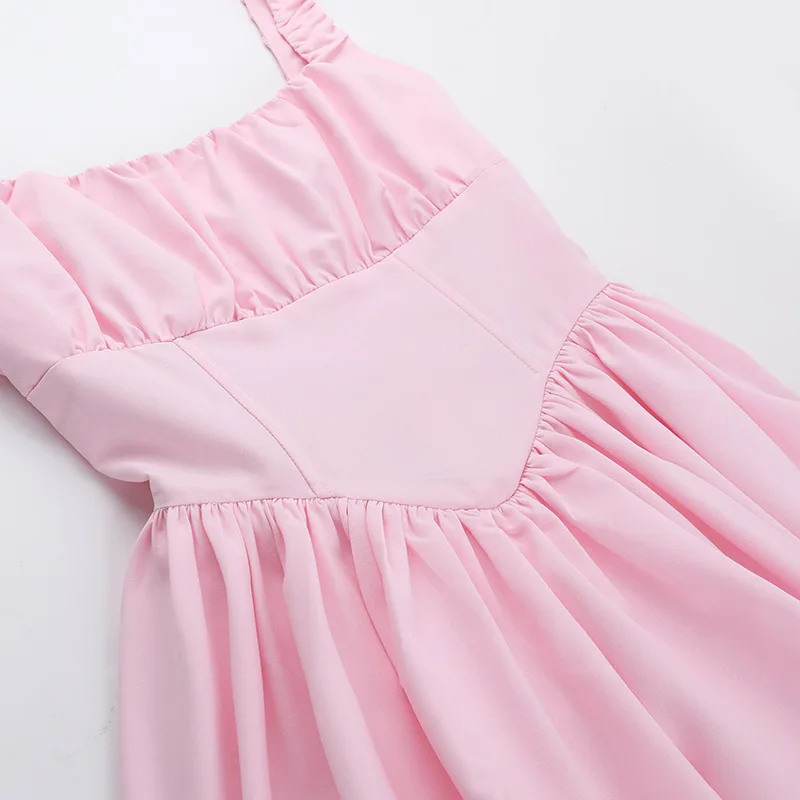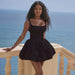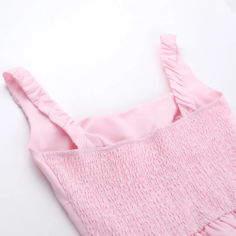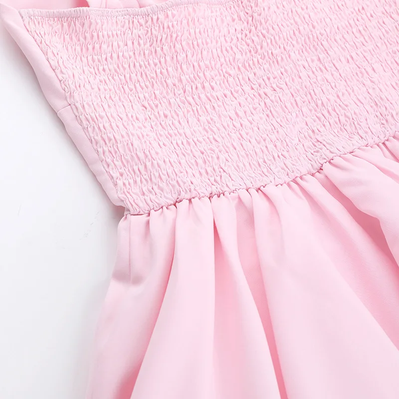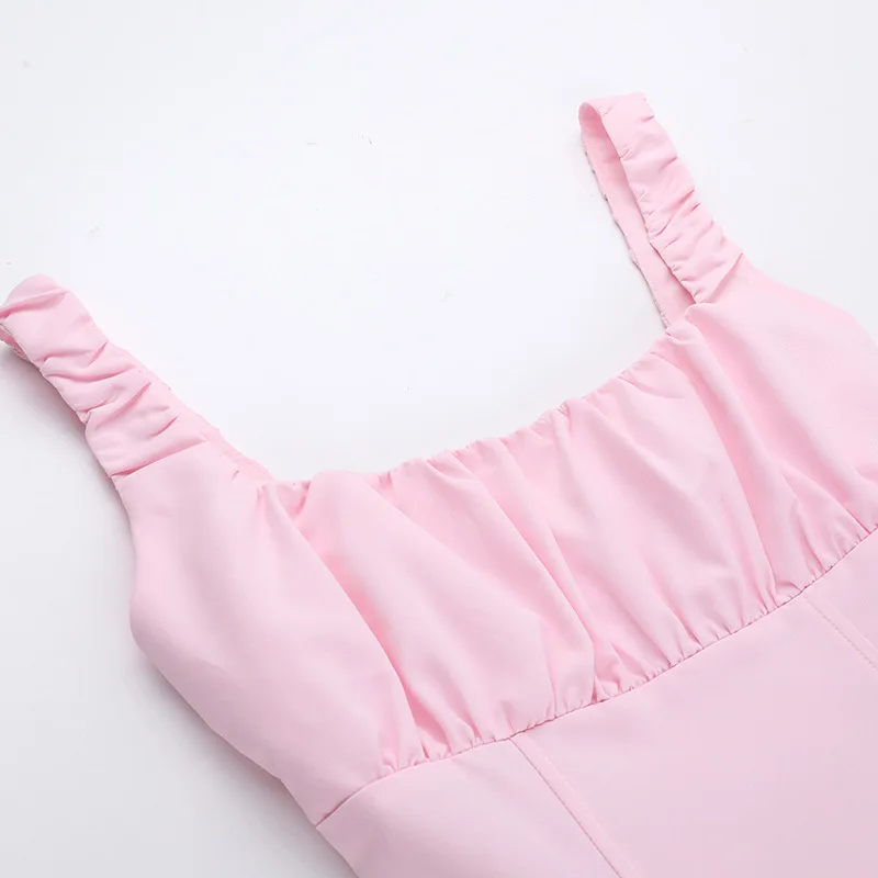 Sexy Backless Folds Beach Holiday Dress For Women Slim Elegant Splice Spaghetti Strap Dress Female Sleeveless A-Line Hem