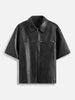 Top New US Black PU Leather Short Sleeved Shirt Oversized Mens Loose Men Streetwear Leather Cool Fashion Fitting Leather Shirt