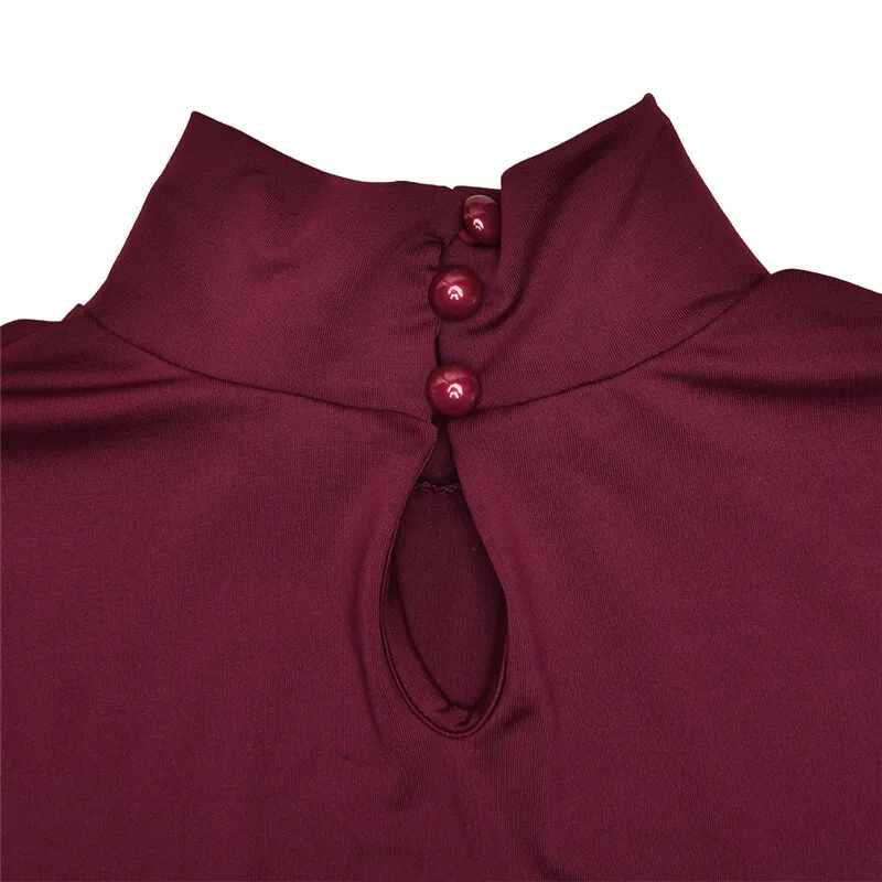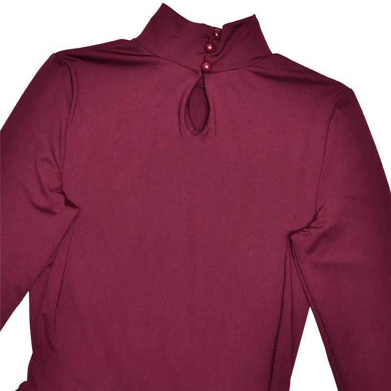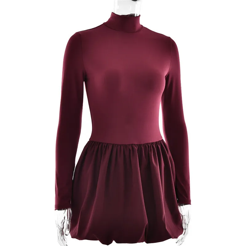 Turtleneck Long Sleeve Sexy Mini Dress For Women Robe Fashion Burgundy Patchwork High Waist A-line Club Pleated Dress