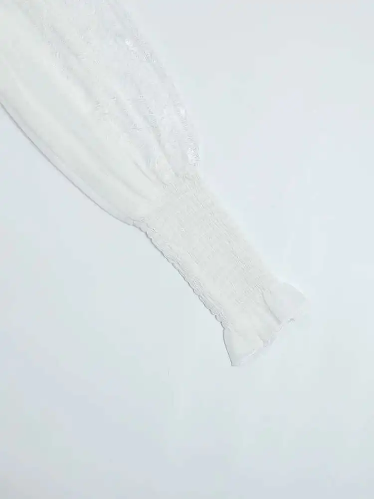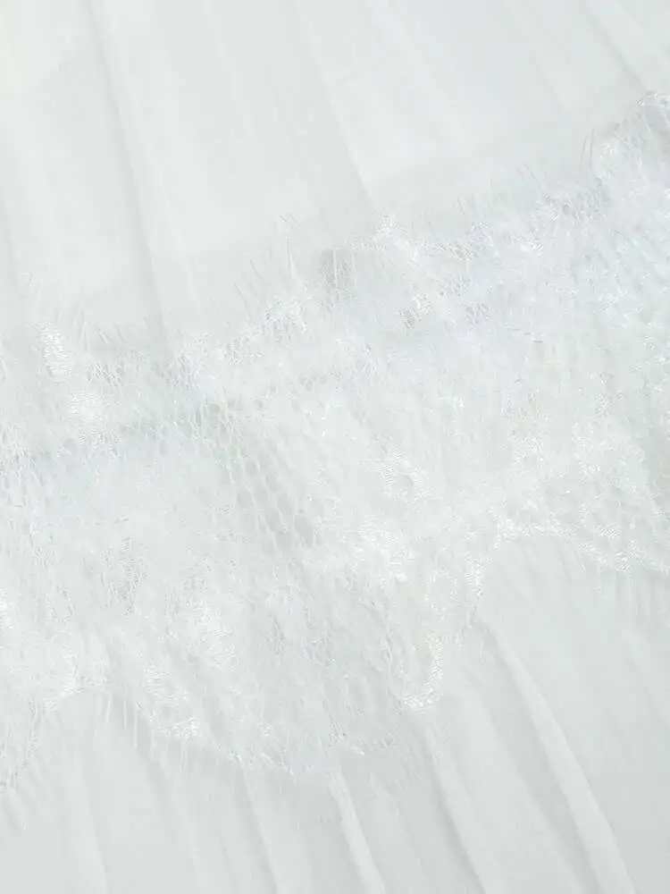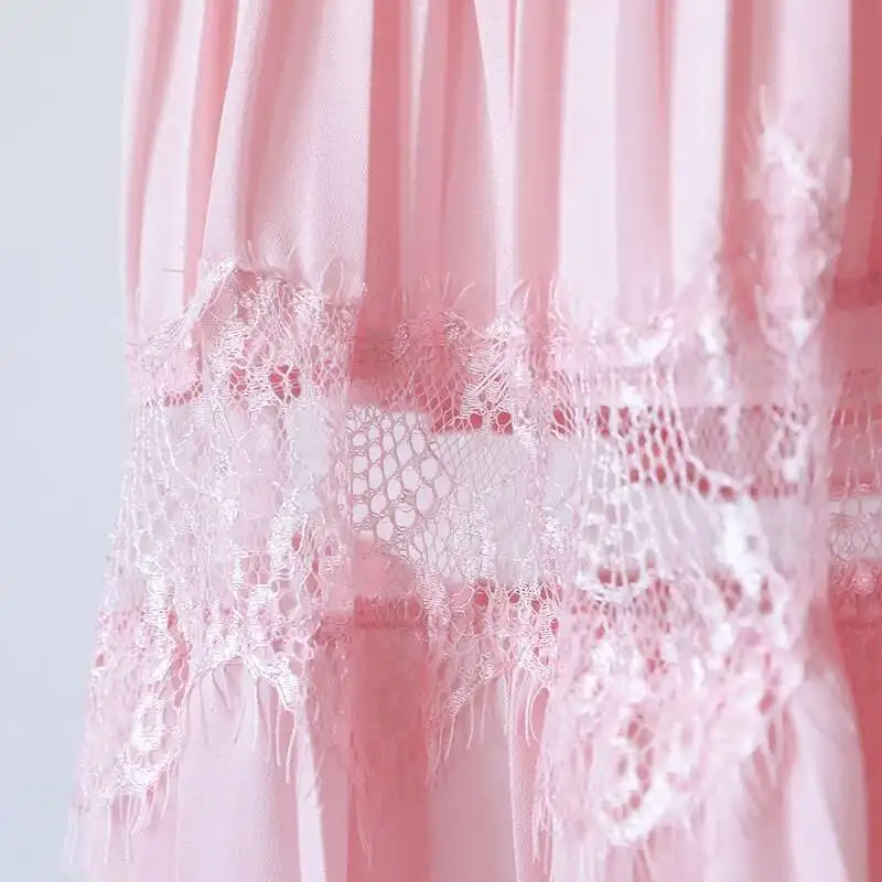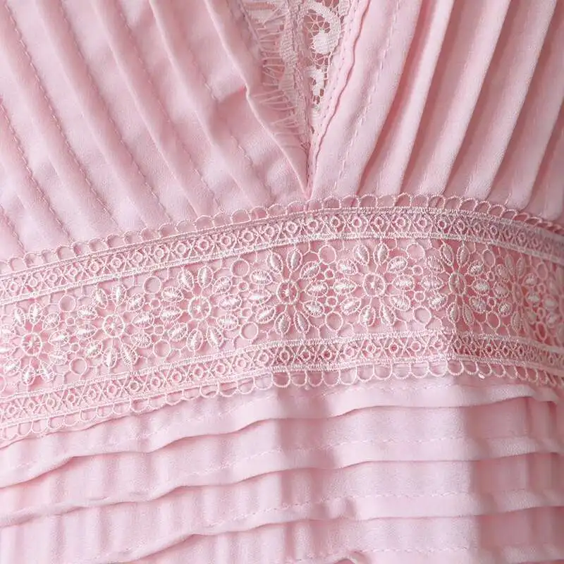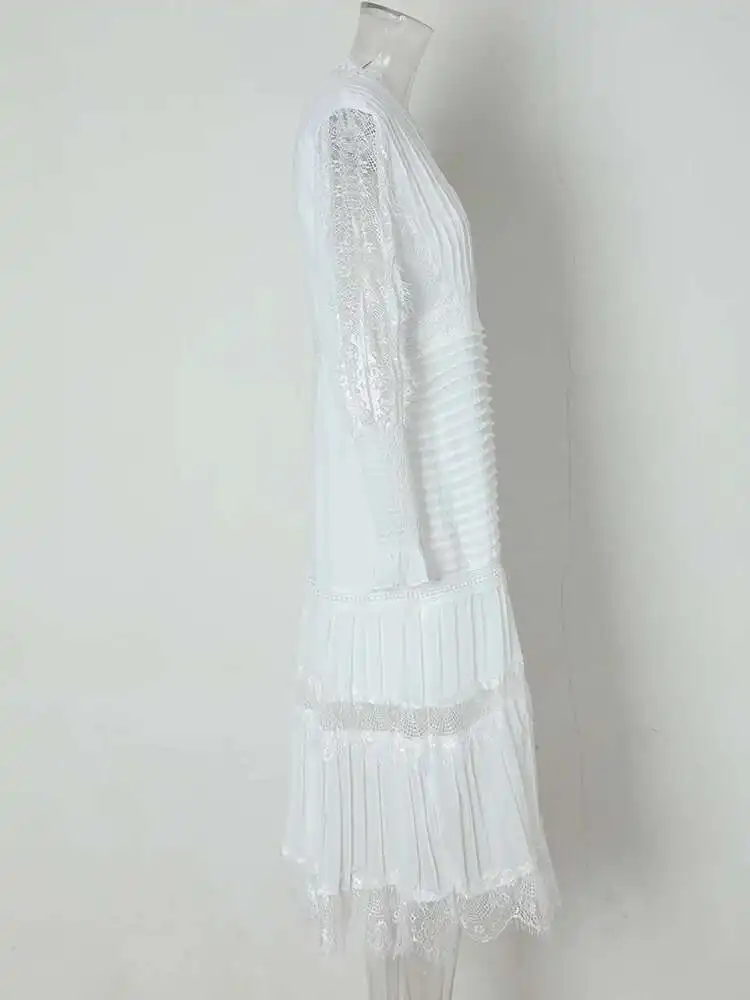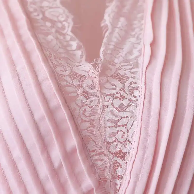 V-neck Lantern Sleeve Lace Stitching Midi Dress Female Clothing Slim Party Dresses For Women Elegant 2025 Summer New