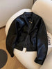 Vintage Biker Women Pu Jackets Streetwear Casual Long Sleeve Y2K Coat American Retro Pockets O Neck Fall Winter Outwear Tops New