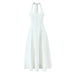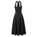 Vintage Elegant Black White Halter Midi Long Dresses Women A-line Slim Sexy Backless Dress