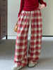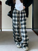 Vintage Faux Woolen Plaid Pant Women High Waist Soft Loose Wide Leg Trousers Casual Female Fall Winter Pockets Retro Y2K Pants