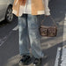 Vintage Flame Embroidered High Rise Jeans Women's Washed Old Loose Fit Jeans Women's Y2K Jeans Casual Pants Loose Fit Jean