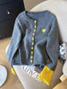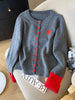 Vintage Love Print Cardigan Women Lazy Wind Patchwork Long Sleeve Knitted Sweaters Casual O Neck Fall Retro Korean Female Tops