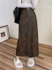 Vintage Pu Leather Split Midi Skirts Women Y2K High Waist Streetwear All Match Hip Skirt Korean Solid Casual Ladies A Line Skirt