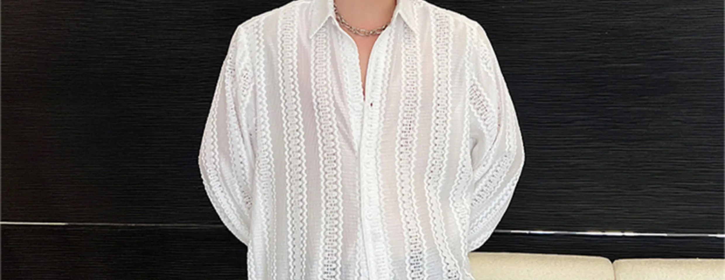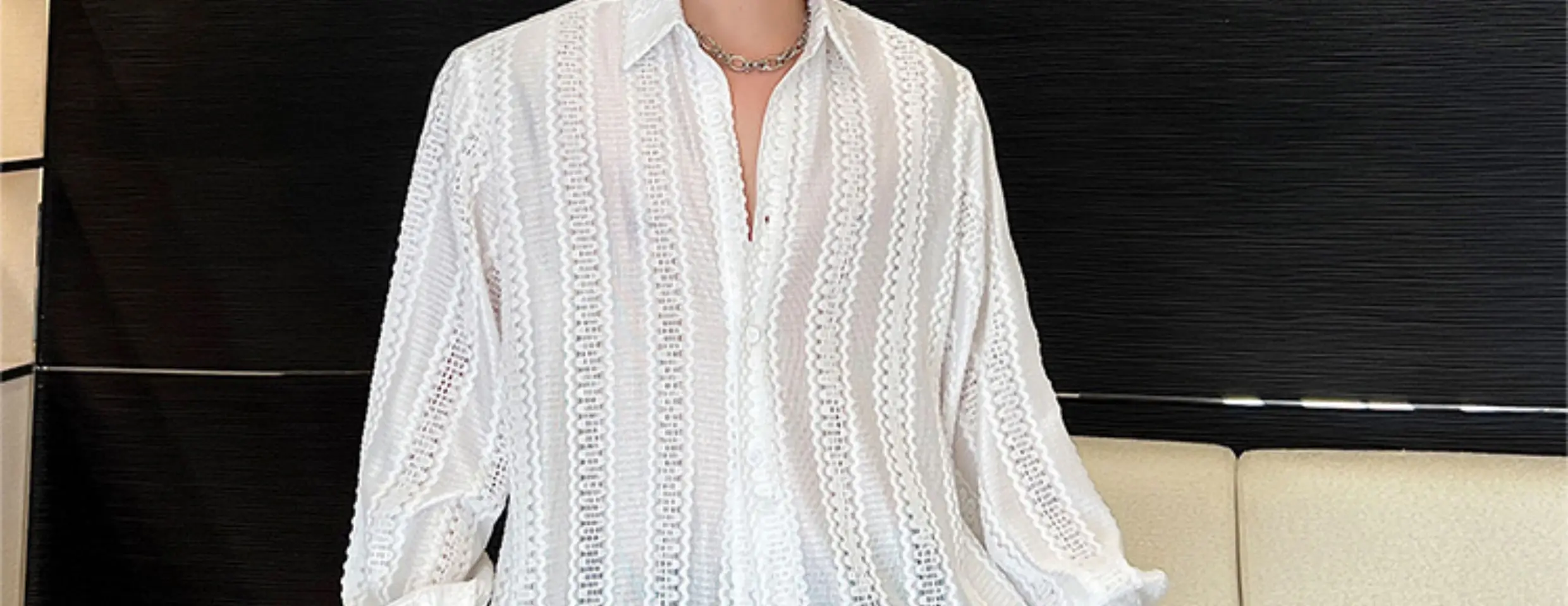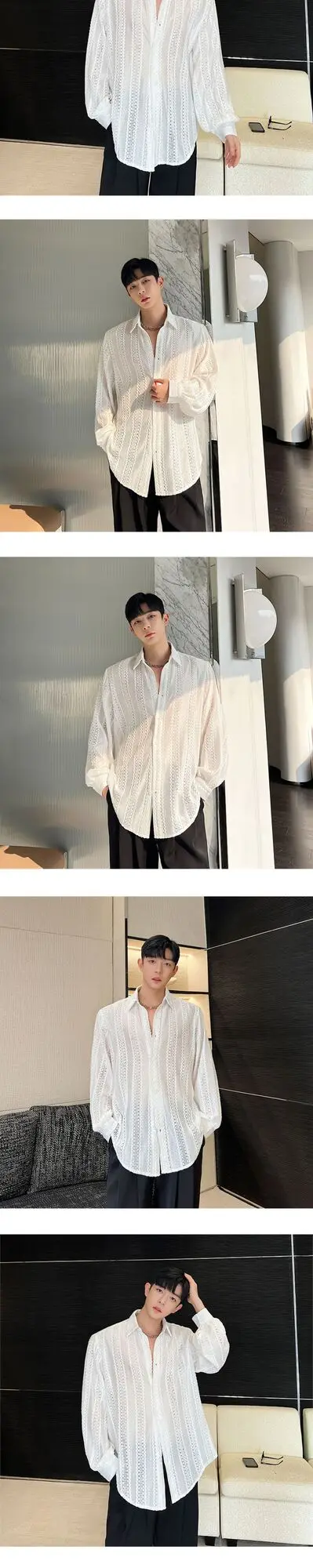 2024 Korean Splicing Translucent Design Long Sleeve Shirt Men's Niche Stylish Elegant Temperament Street Male Tops