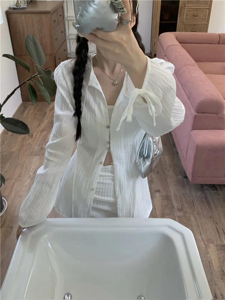 2024 Spring New High Street Fashion Sunscreen White Long-sleeved Shirt for Women + Sexy Slim A-line Skirt Two-piece Suit