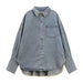 2024 Spring New Streetwear Distressed Loose Casual Denim Long-sleeved Shirt Women + Asymmetric Sexy A-line Skirt Two-piece Suit