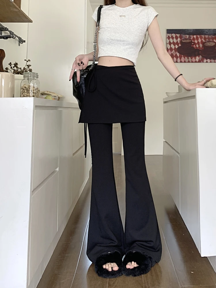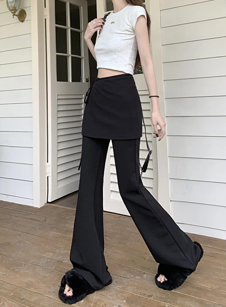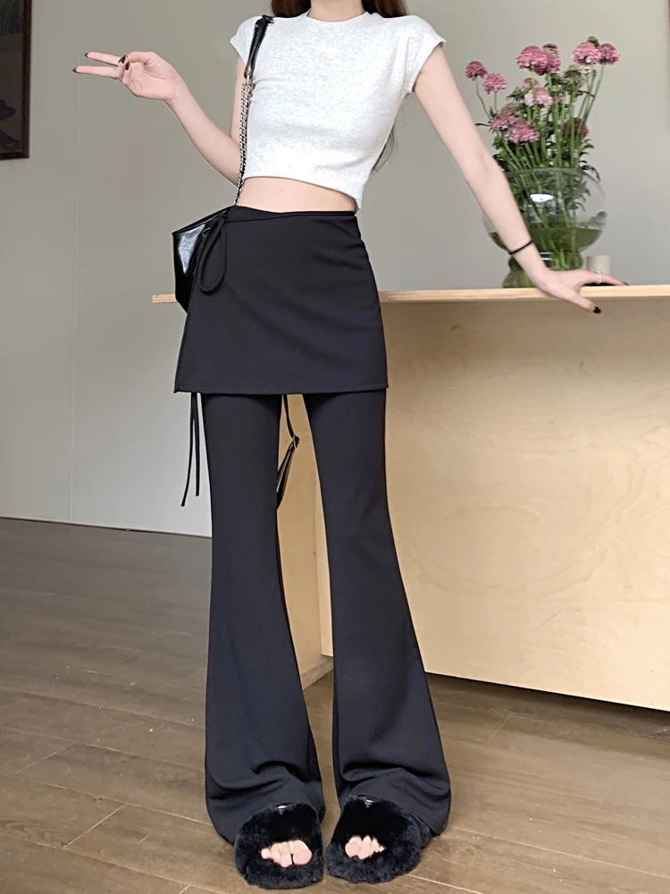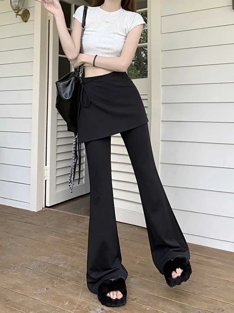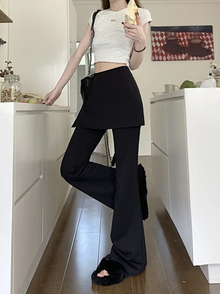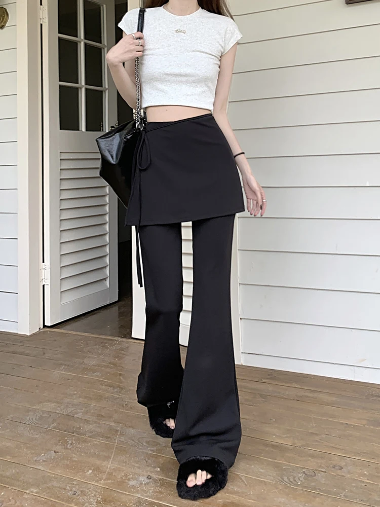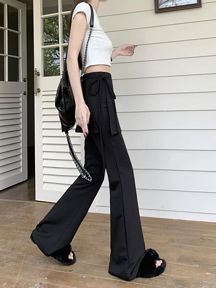 Black High Waist Slim Mopping Pants Women Minimalist Chic New 2024 Summer Office Lady Streetwear Casual Flare Trousers