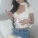 Coquette Contrast Bow Folds Cropped Top White Pink Women's Summer Short Sleeve Slim-fitting Short Sleeve T-shirt Y2K