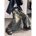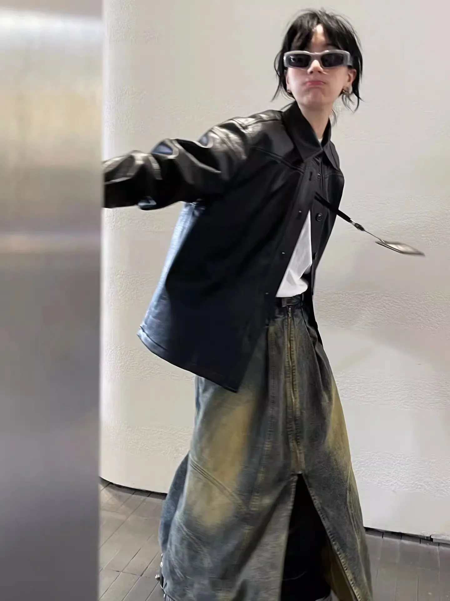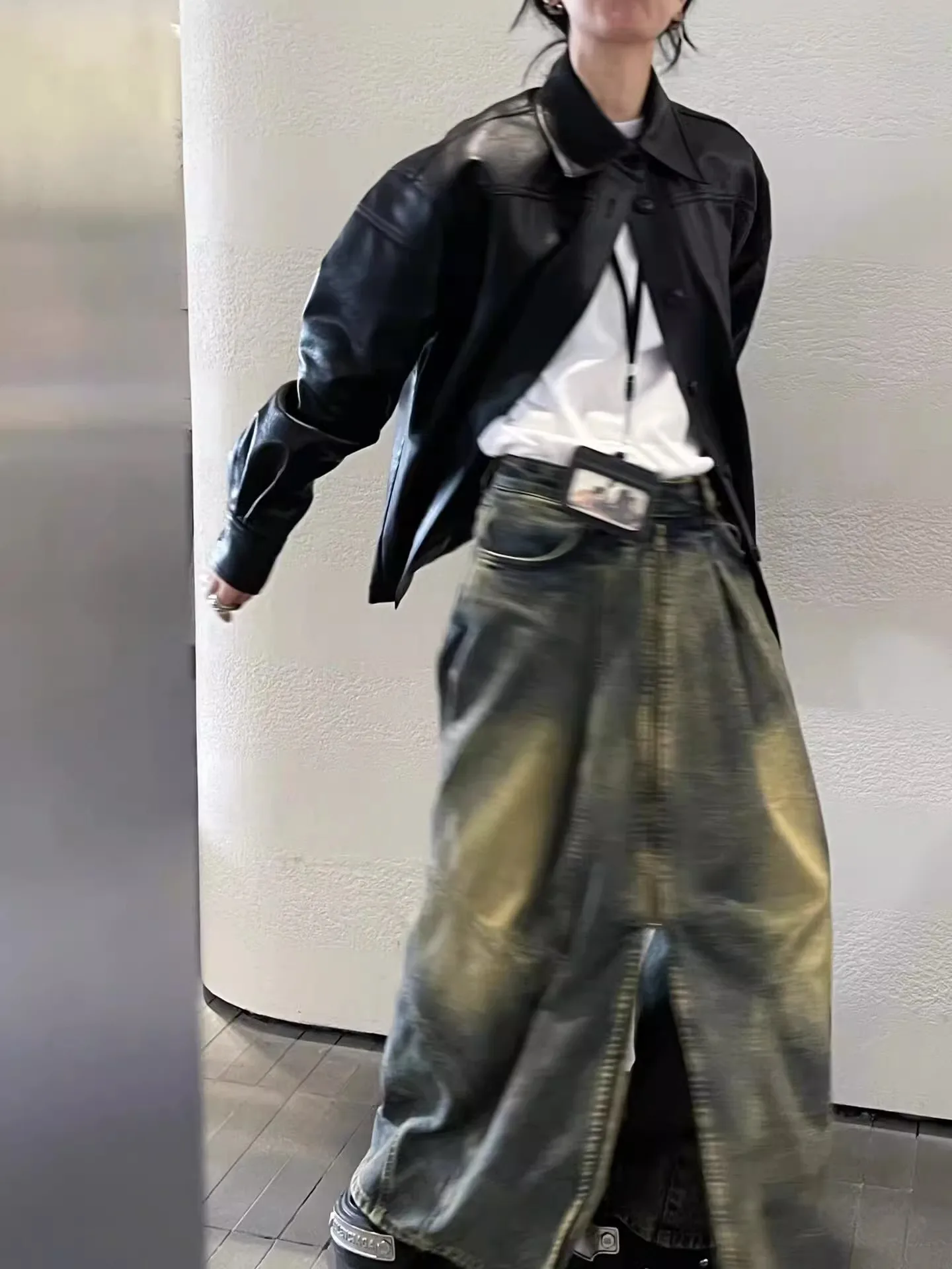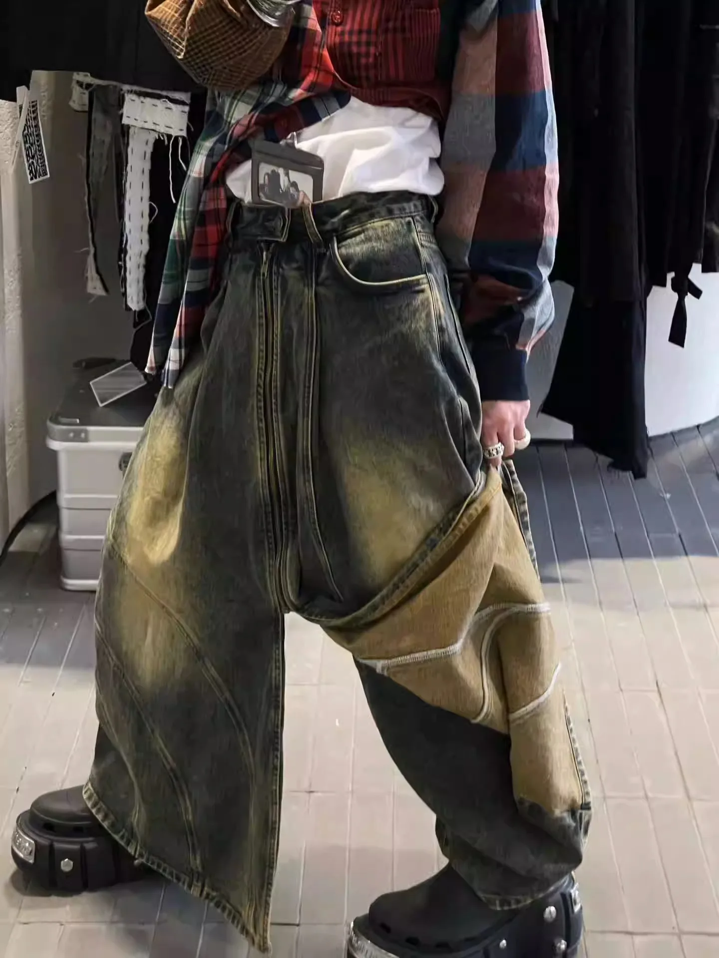 Fake Two-piece Loose Casual Zipper Jeans Women Autumn New Korean Distressed Washed All-match Denim Wide-leg Pants