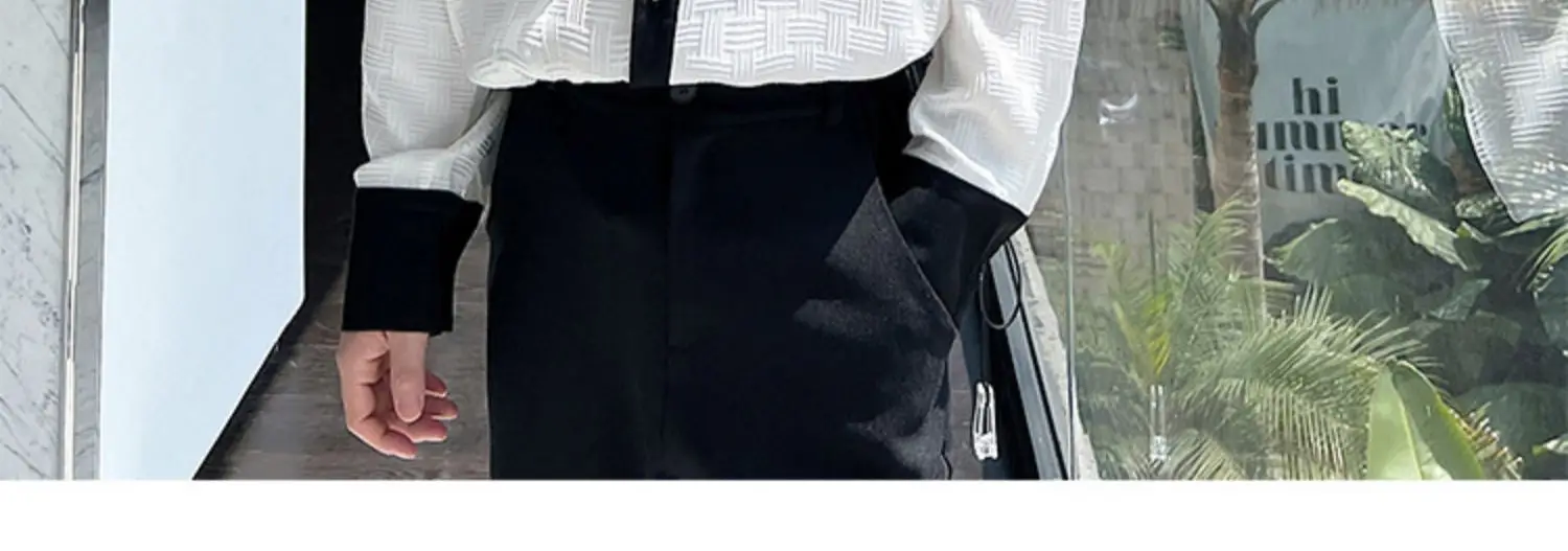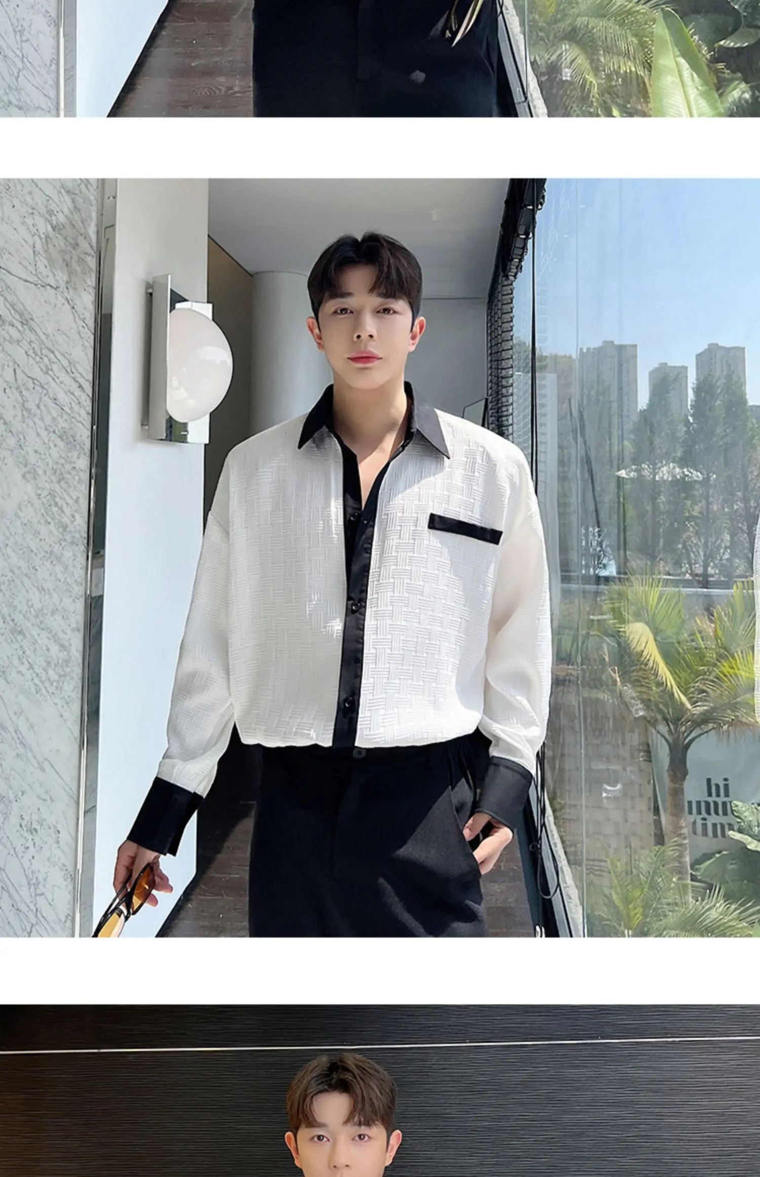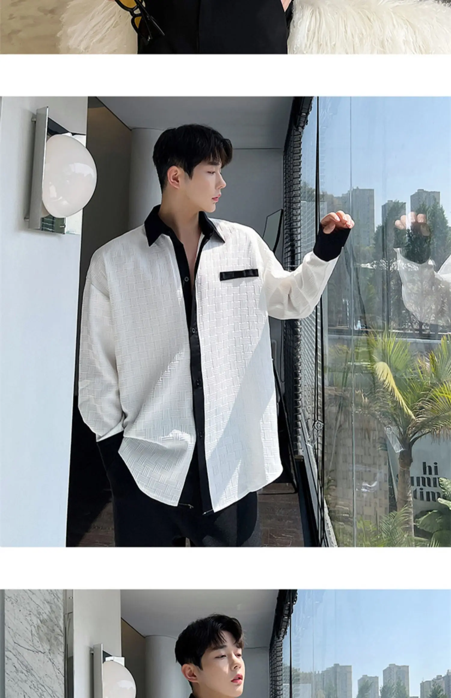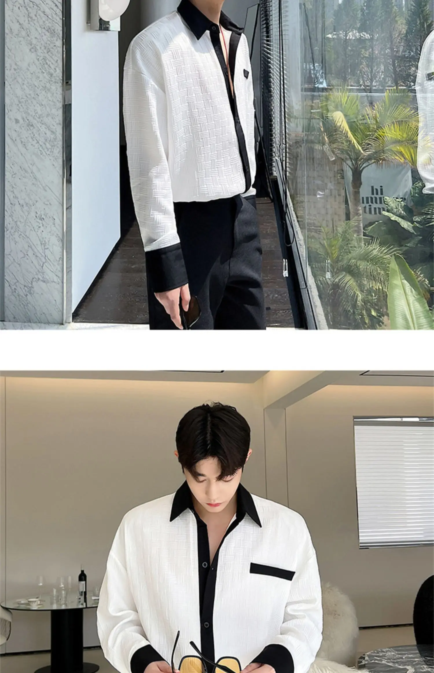 Fashion Korean Shirt Long Sleeve Color Contrast Design Edge Men's Elegant Trendy 2024 Spring Casual Loose Tops New