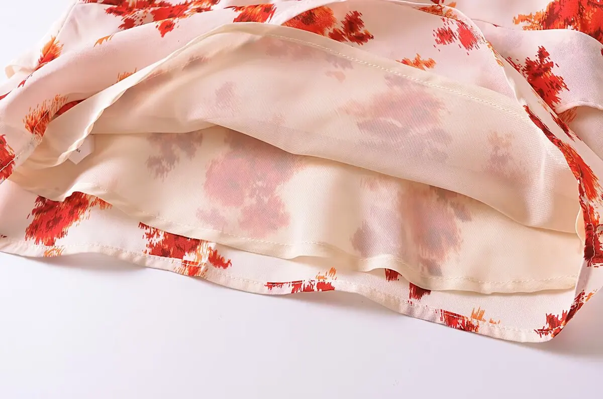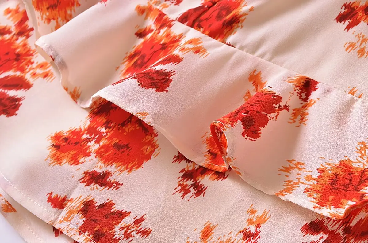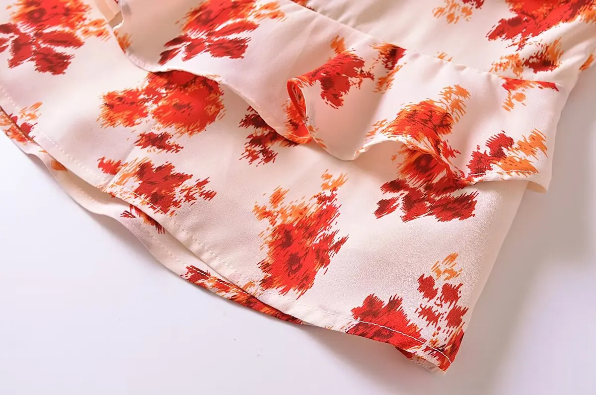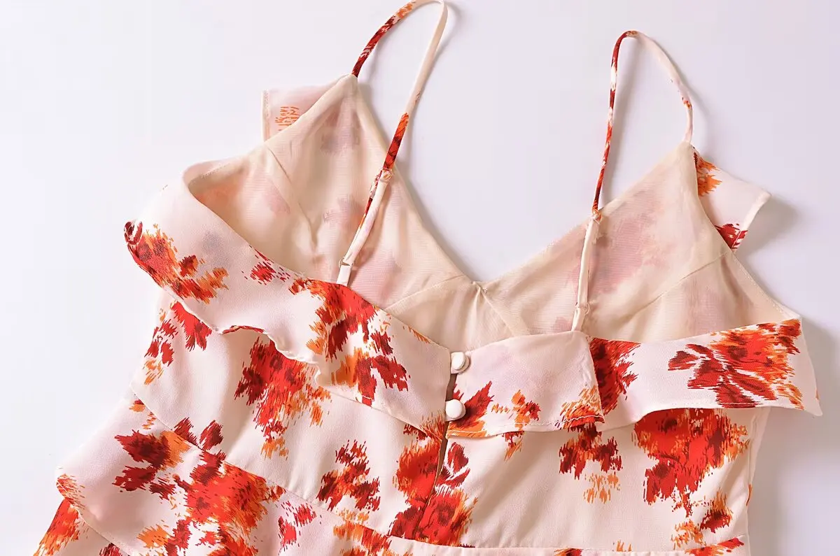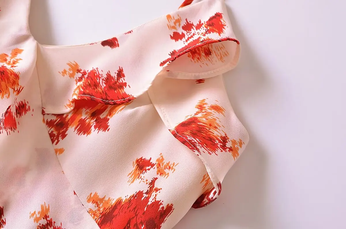 French Style Floral Print Ruffle Camis Women Sexy Sleeveless V Neck Summer Crop Top