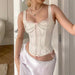 French Style Pearl Beading Leather Tank Tops White Black Coquette Aesthetic Skinny Corset Cute Lace Bow Camisole Women