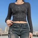 grunge outfits New Hot Rhinestone Long-Sleeved T-shirt Women's Cropped Top T-shirt Women's Long-Sleeved Autumn