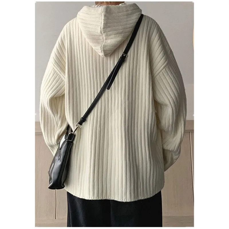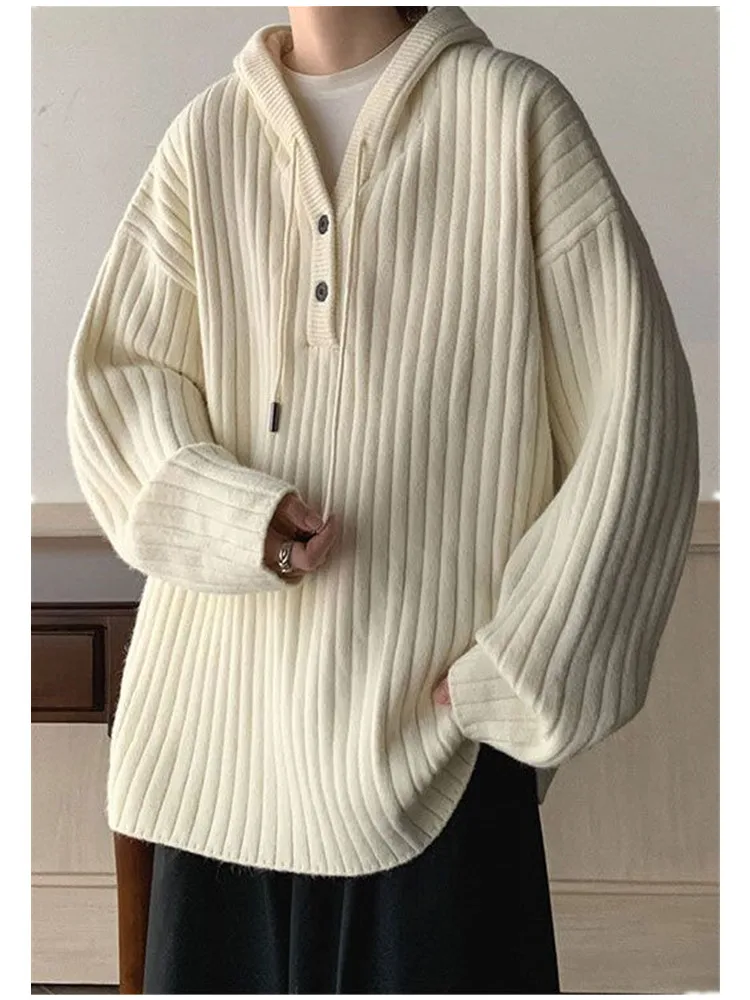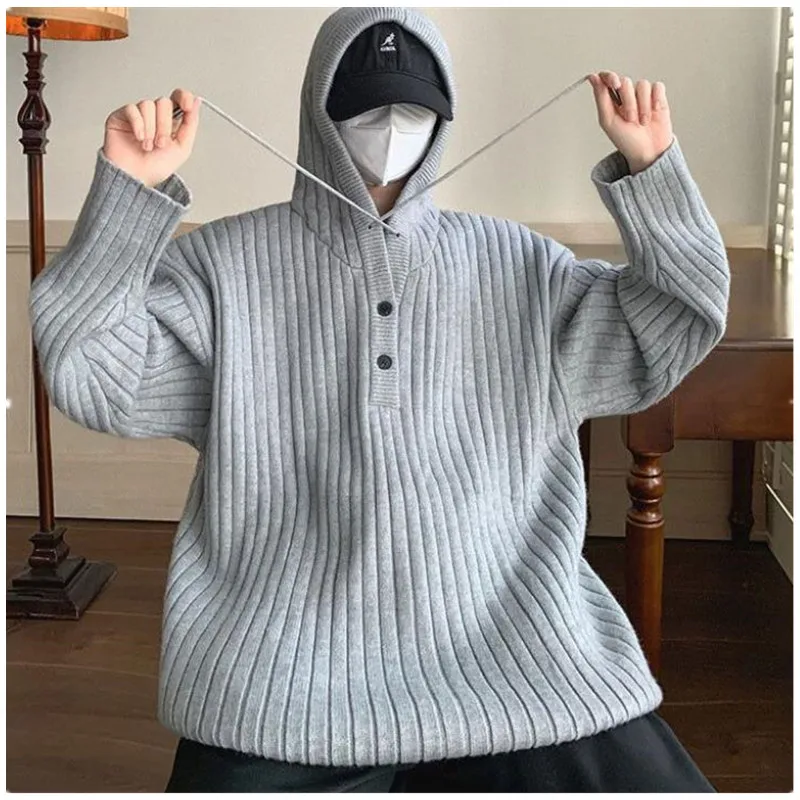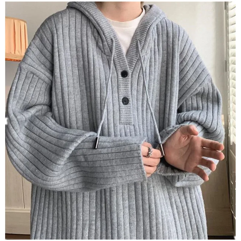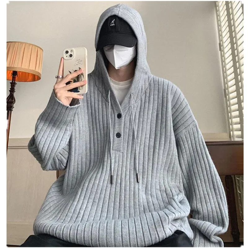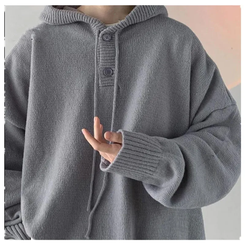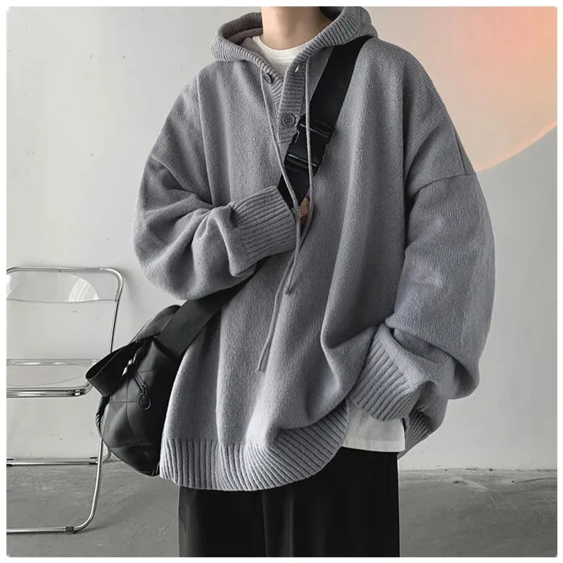 High-end Feel American Vintage Sweater Men's Lazy Hooded Sweater Couple Button Oversize Knit Men Clothing Coat S-3XL