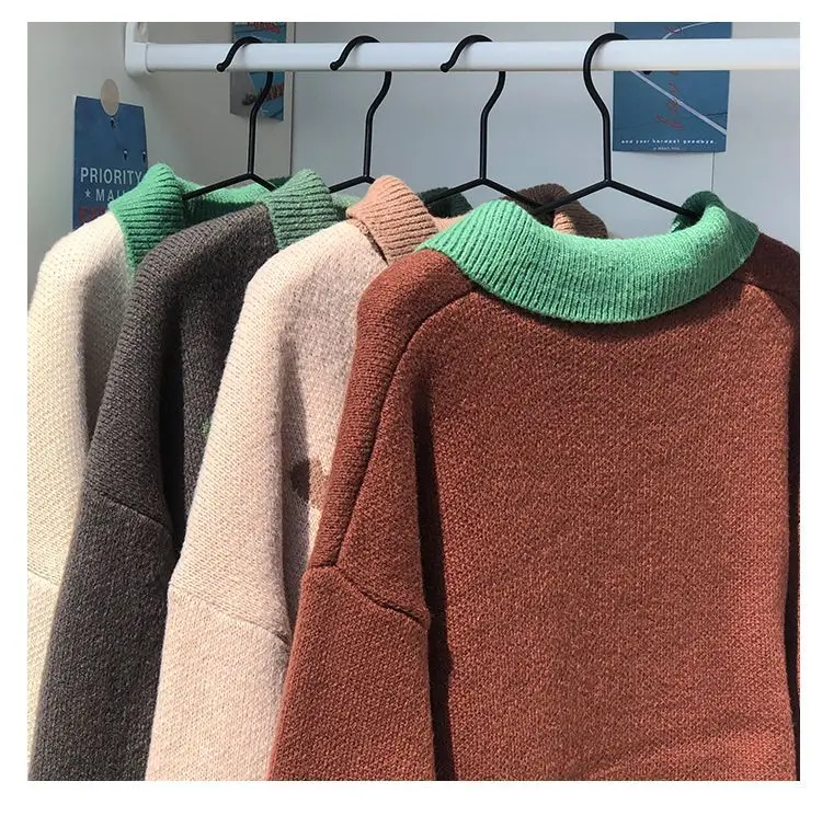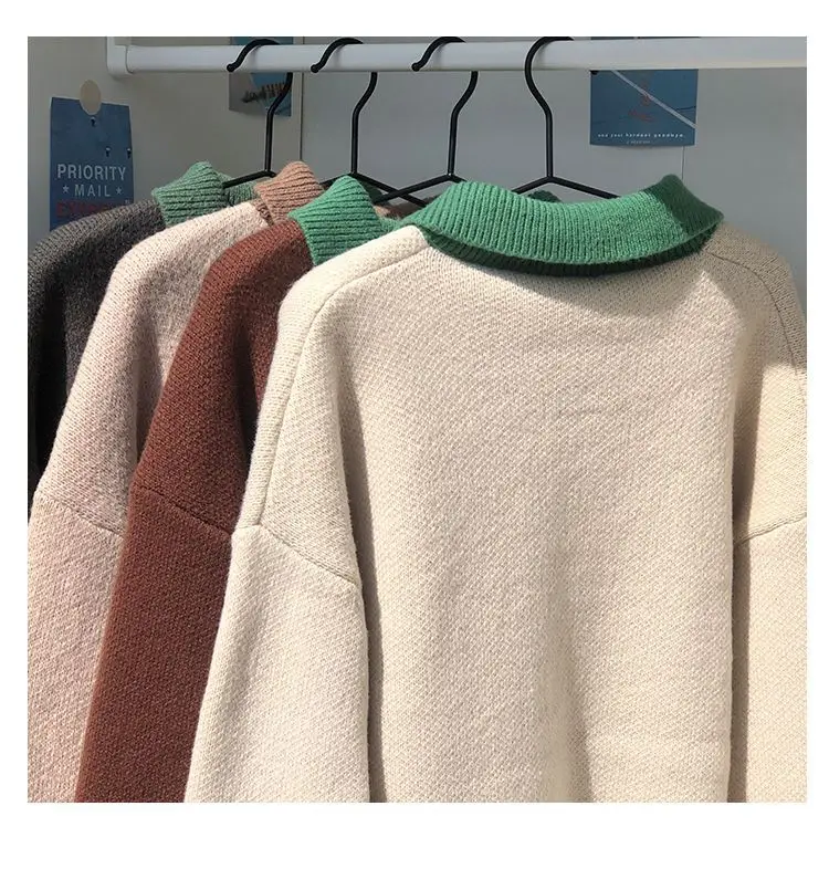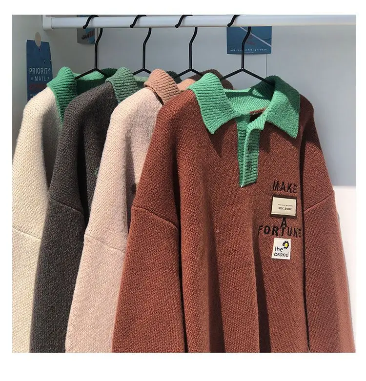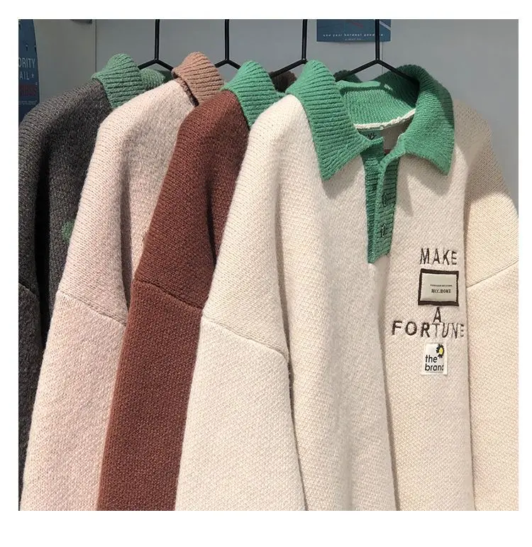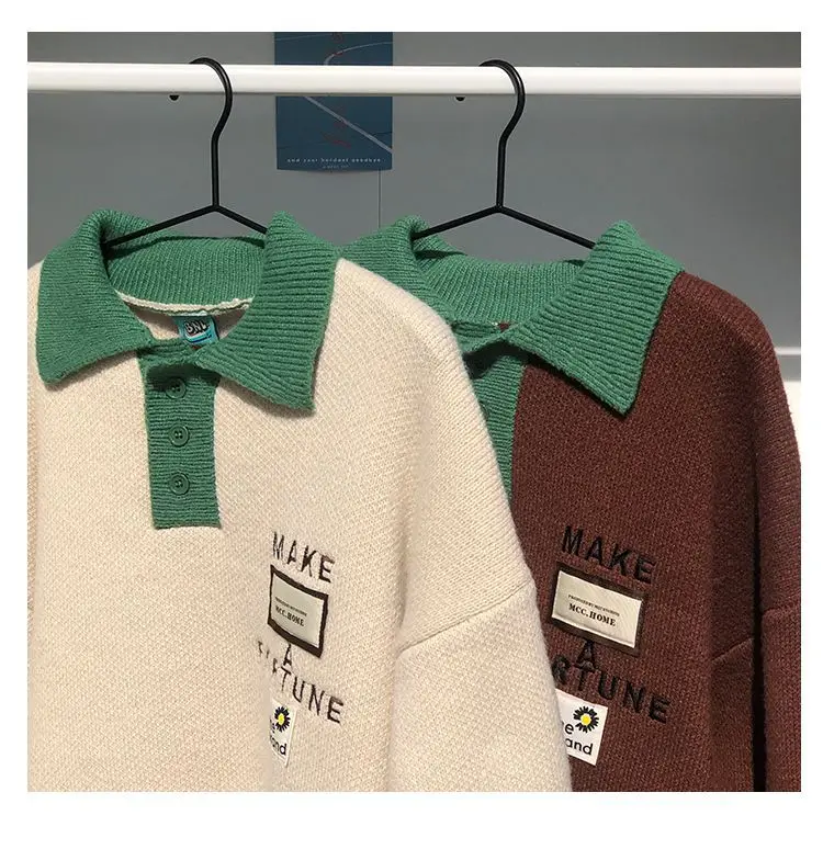 Ins High Street Cute Embroidery Buttons POLO Shirt Sweaters for Men Baggy Oversized Pullover Harajuku Streetwear Winter Clothes