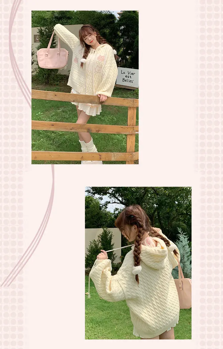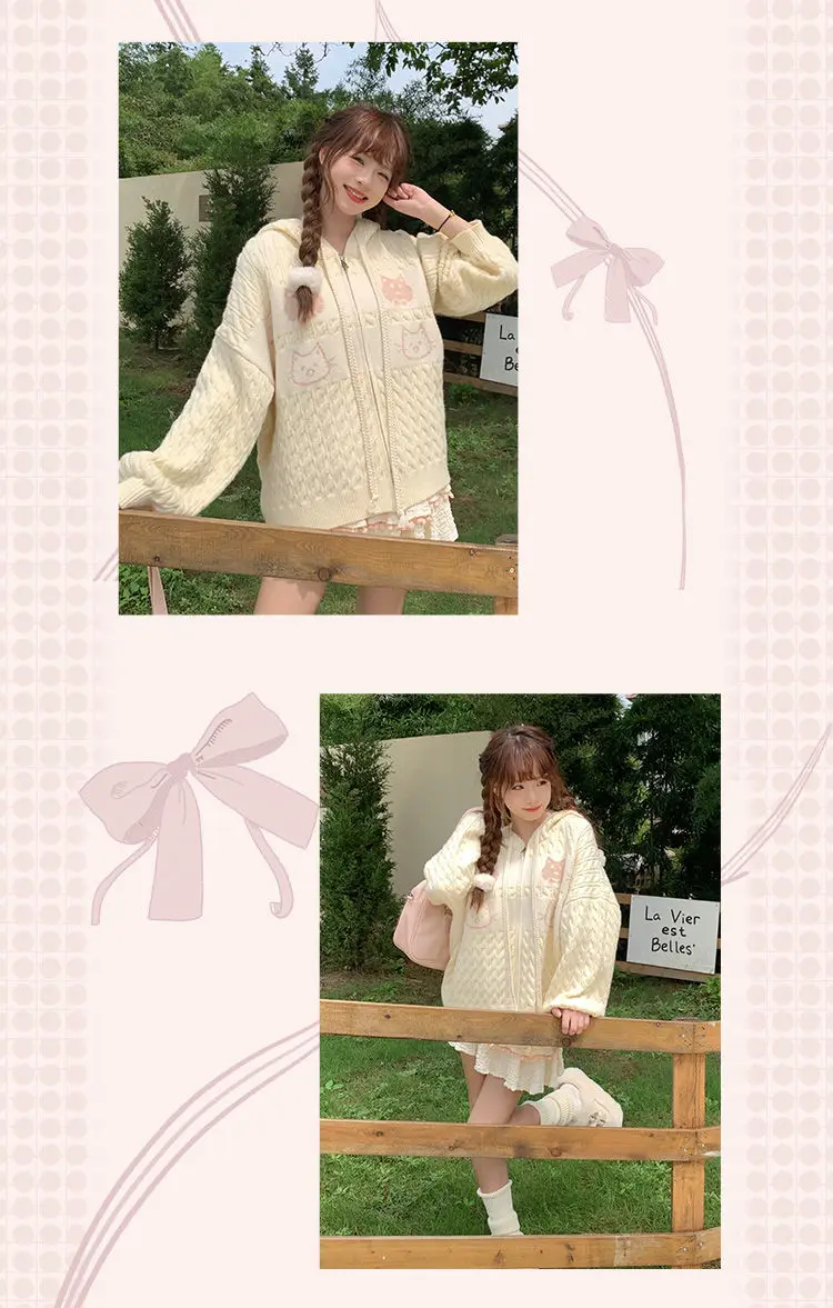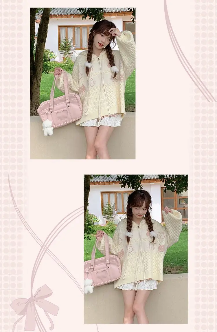 Japanese Anime Cats Kawaii Sweaters Oversized Cardigan Youth Women Students Knitwear Autumn Winter Jackets Coats Korean Trendy