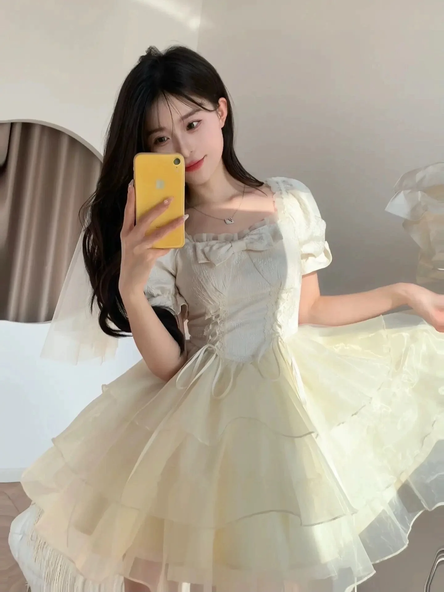 Japanese Lolita Style Princess Mini Dress Women Short Sleeve Bow Ruffle Birthday Dresses Summer Korean Fashion Party Dresses