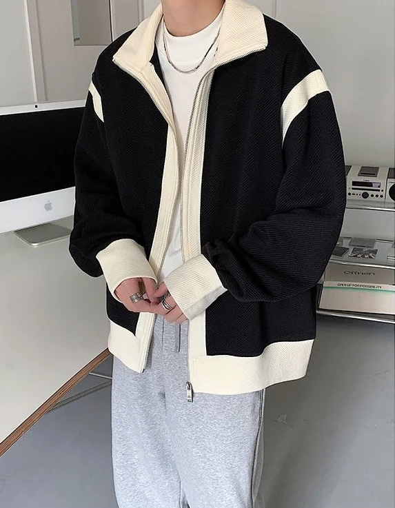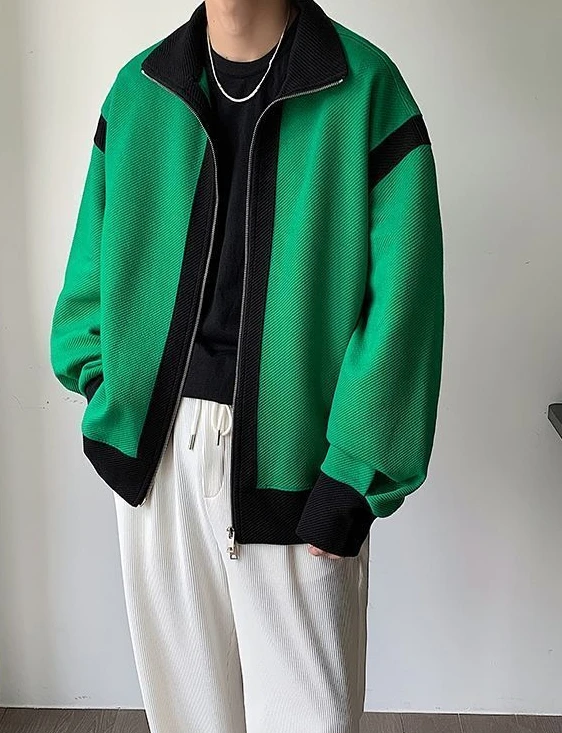 Knitted Sweaters for Men Aesthetic Jacket Man Clothes Cardigan Coat Zip-up Zipper Collared Green Knitwears Cotton Mode Neck A S