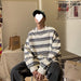 masc outfits Factory Direct Supply Spring and Autumn Contrast Color Striped Shirt Men's Loose Clothes Pullover Casual round Neck Sweater Coat