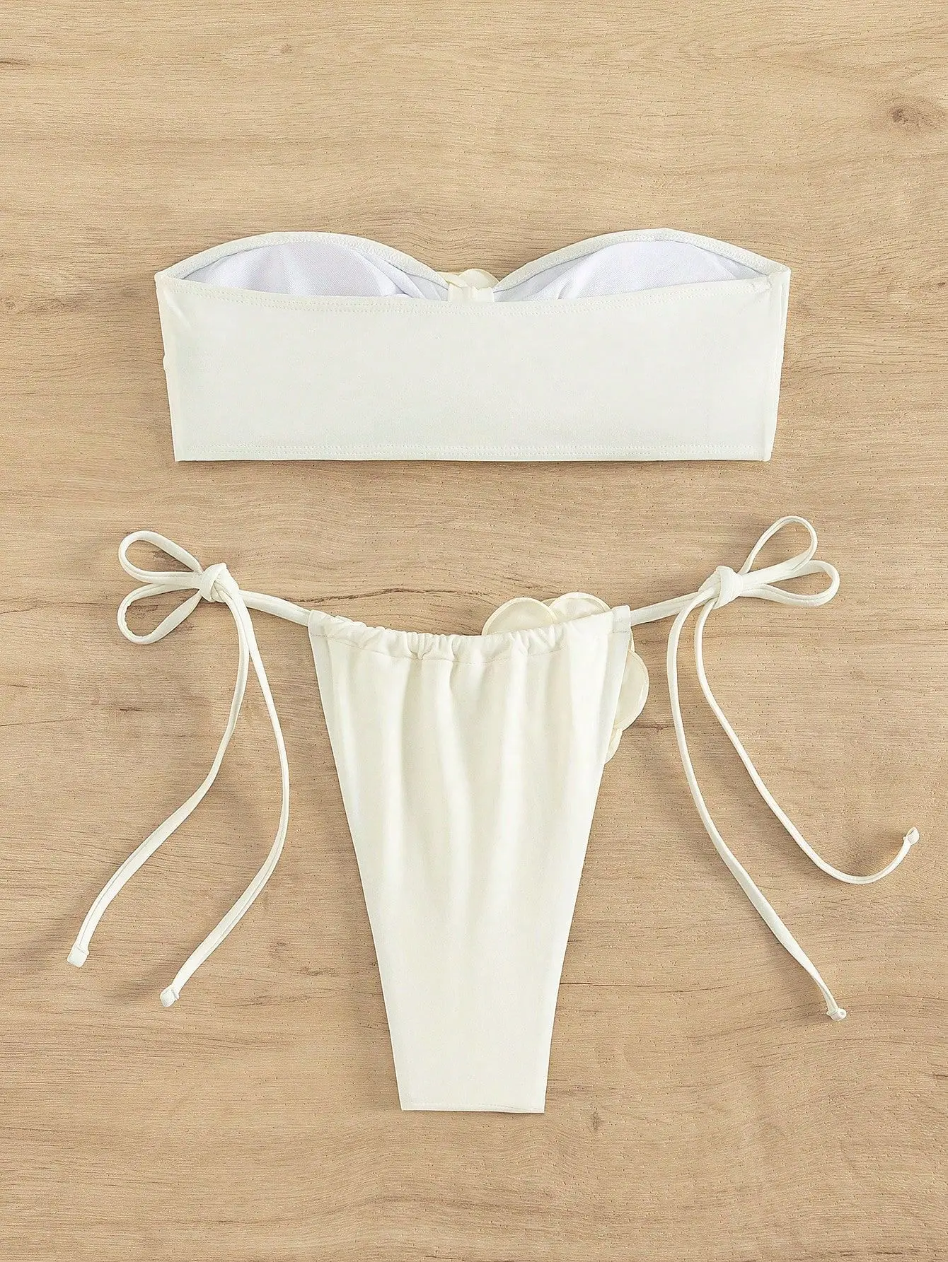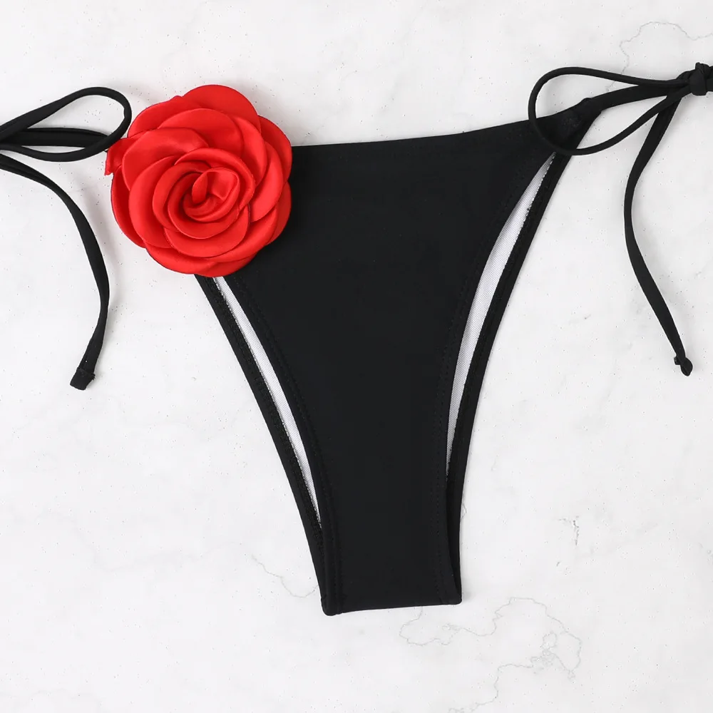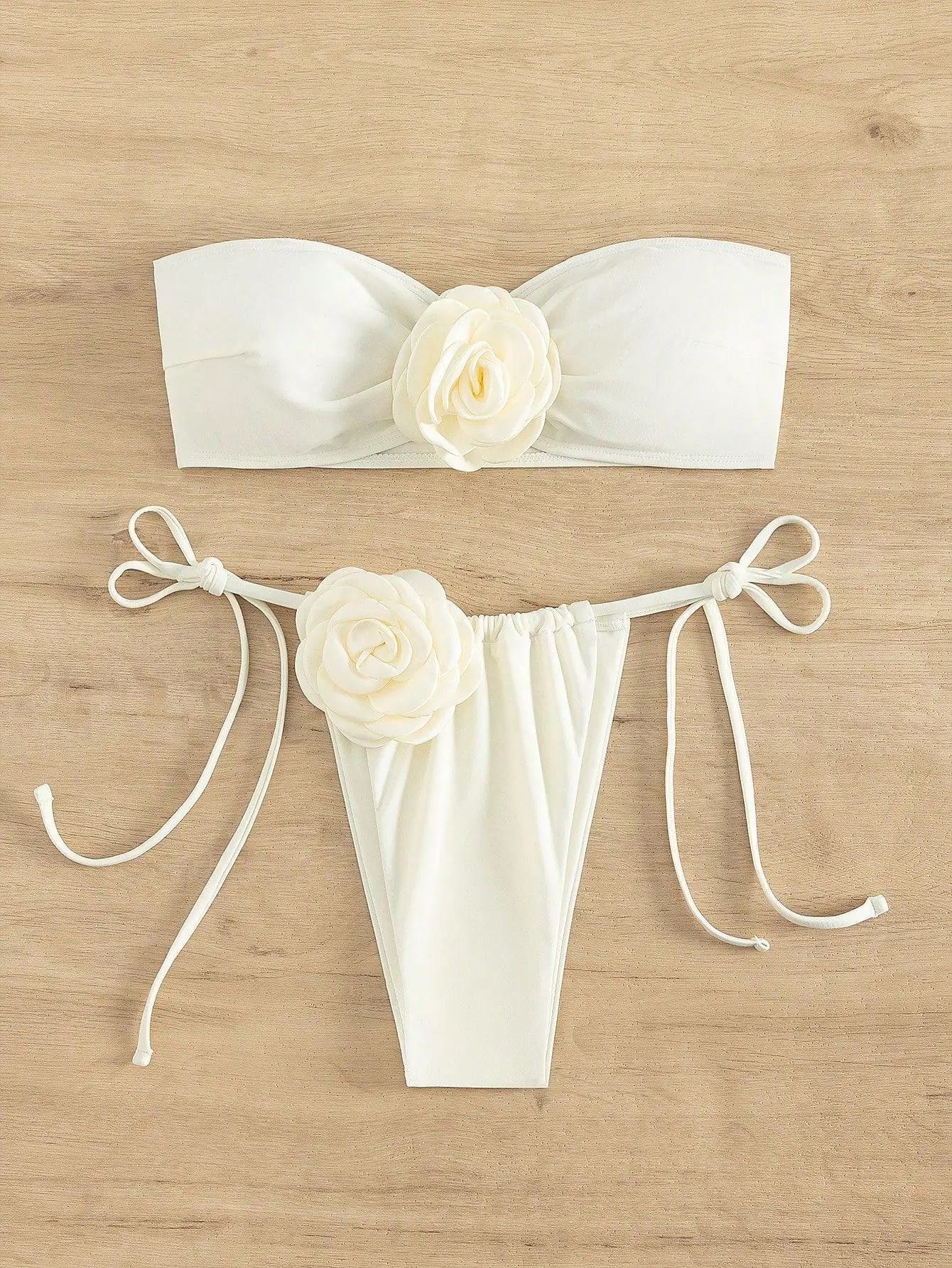 Sexy 3D Floral Designer Bikini Set 2024 New Bandeau Push Up Bra Black White Patchwork Micro Swimsuit Bathing Suit Thong Swimwear