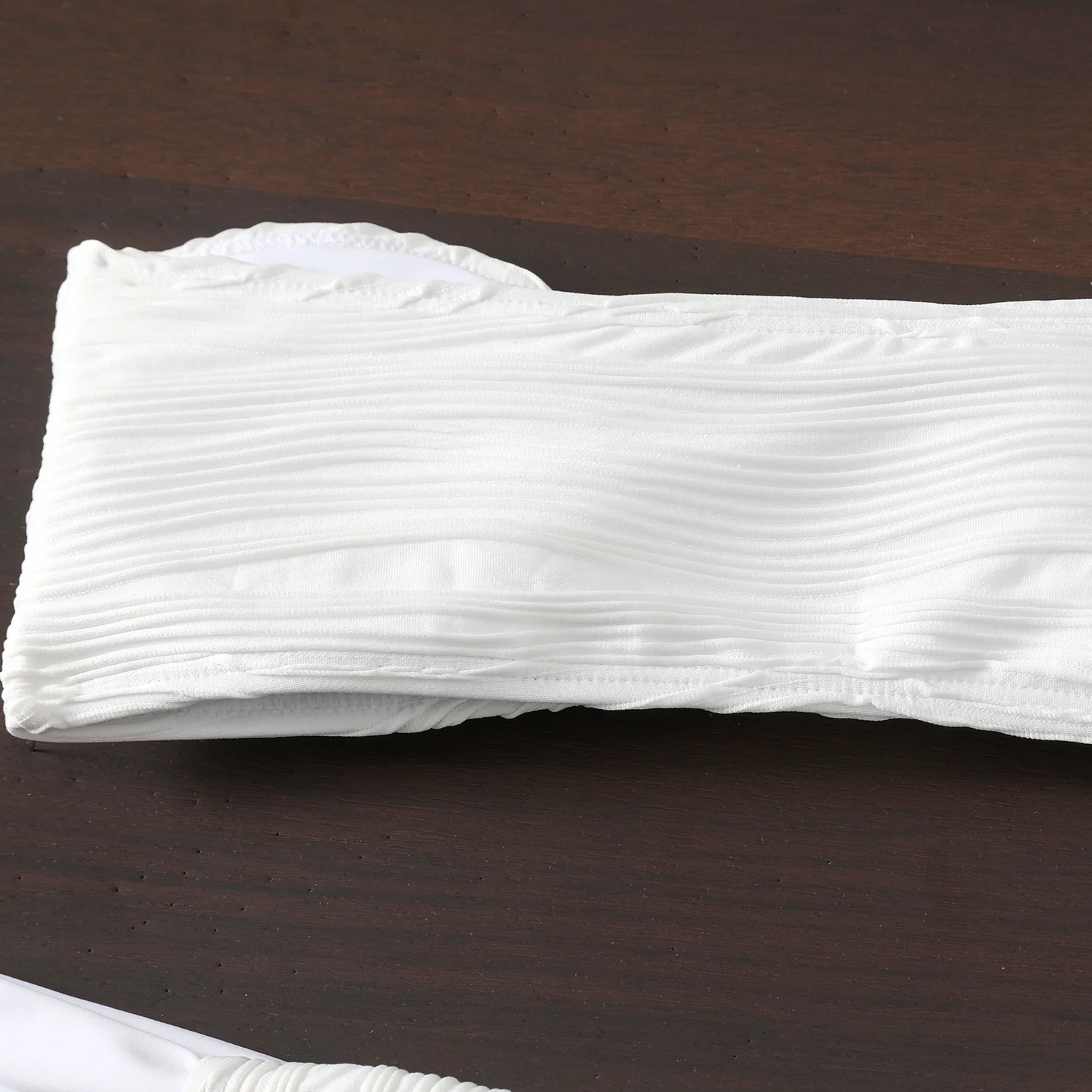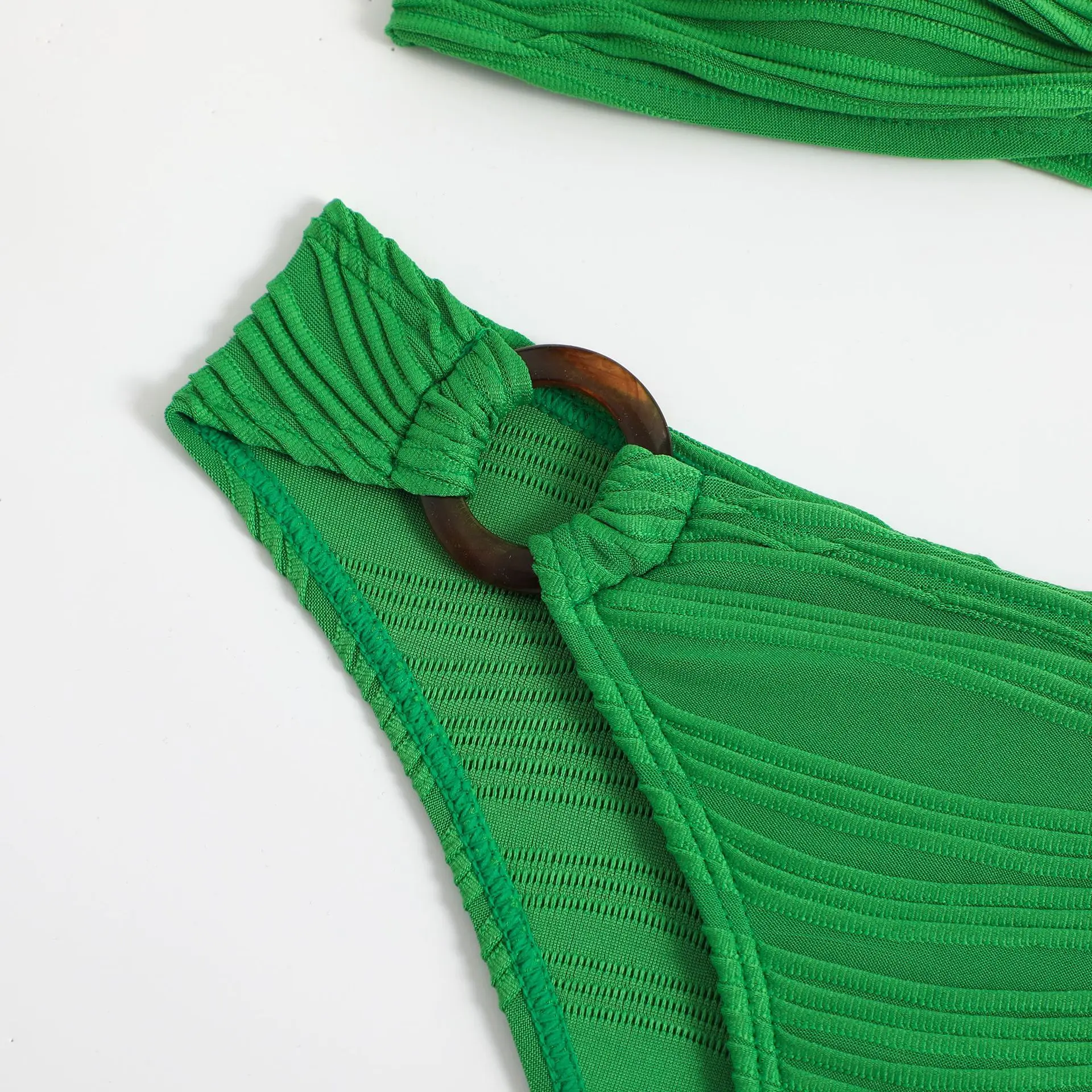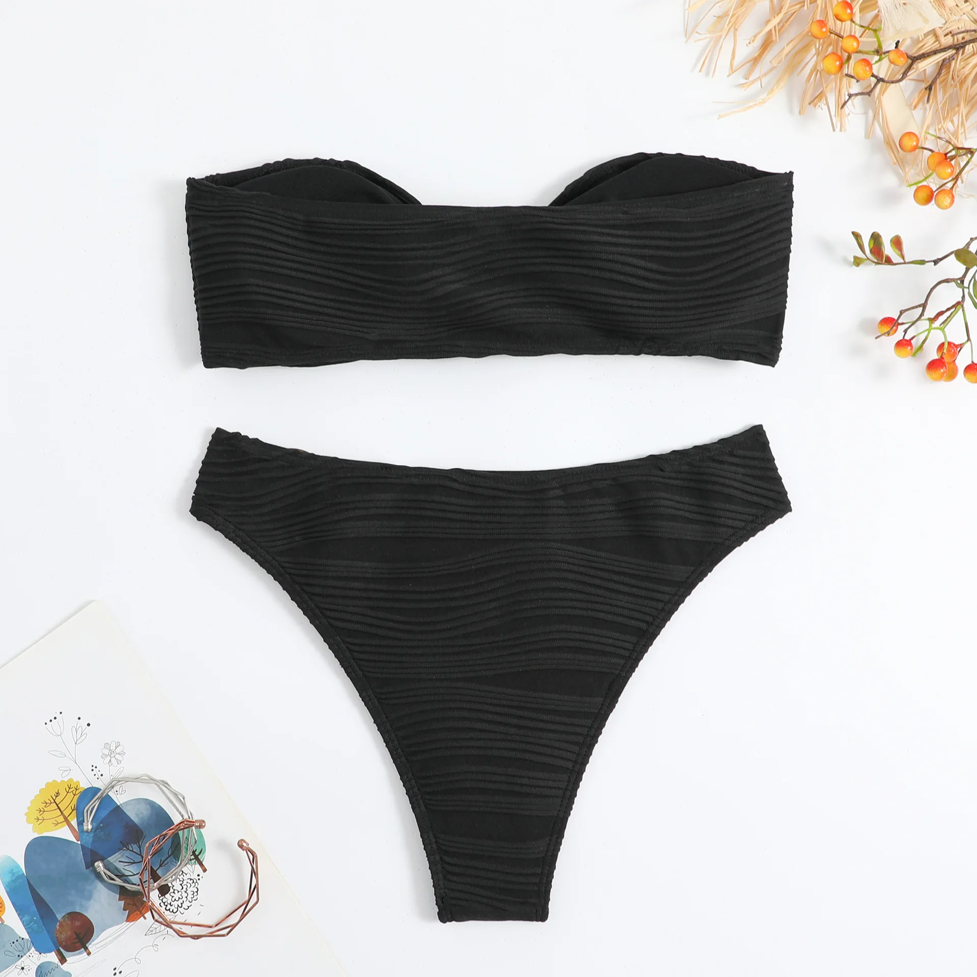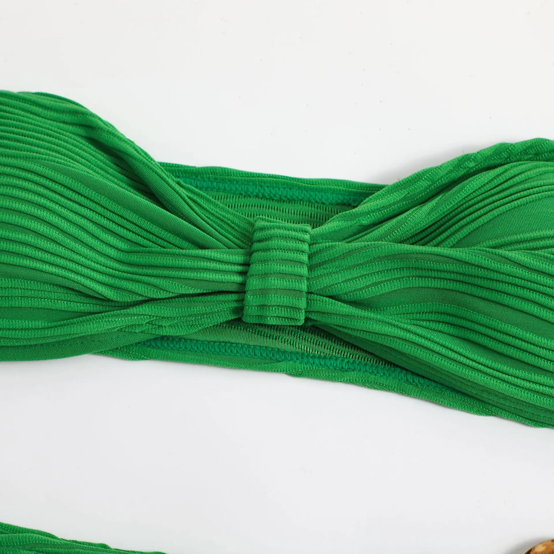 Sexy Bandeau Bikini Set Women New Metal V Neck Push Up Thong Swimsuit 2024 Beach Solid White Bathing Suit Micro Swimwear Biquini