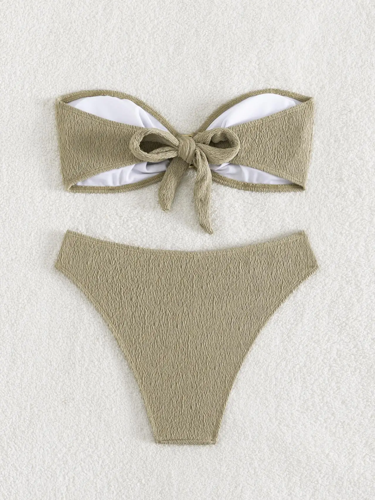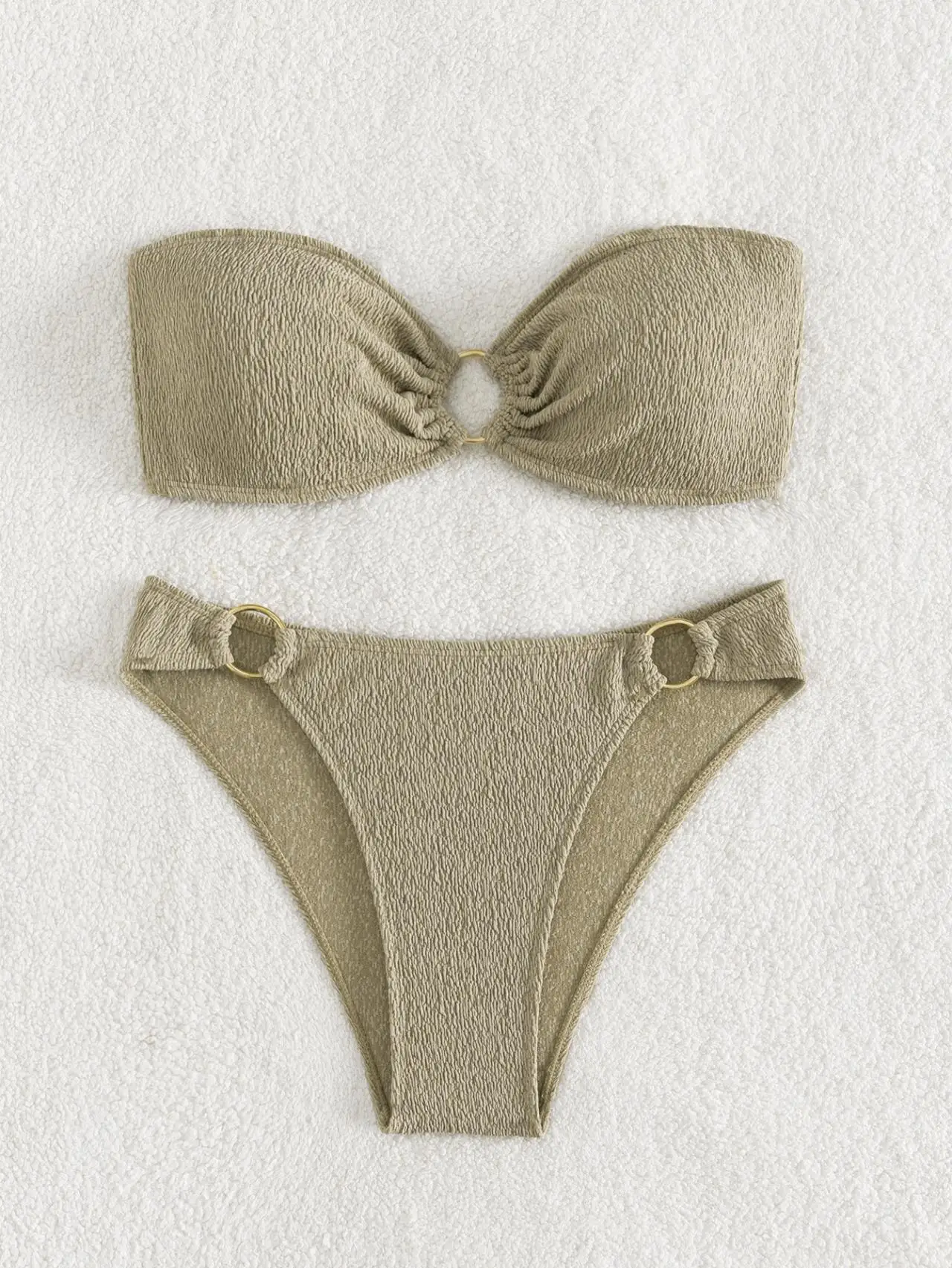 Sexy Black Bikini Set Women Bandeau Ring Linked Push Up Micro Swimsuit Solid Black Bathing Suit Thong Swimwear Beachwear