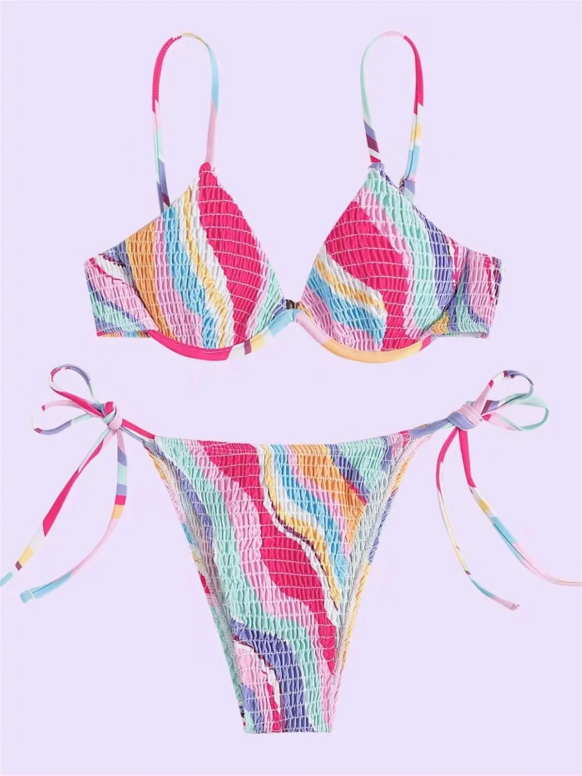 Sexy Brozing Bikinis Sets Women Luxury Striped Underwire Red Tie Dye Micro Swimsuit 2024 Bathing Suit Tie Side Thong Swimwear
