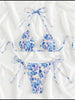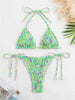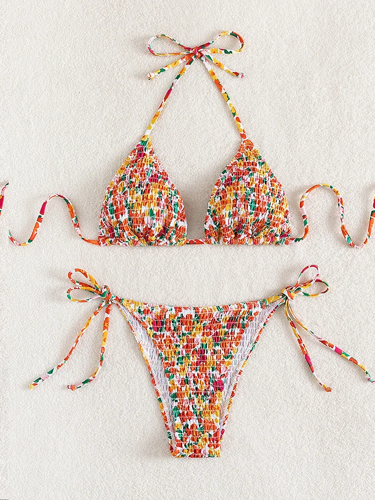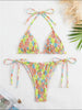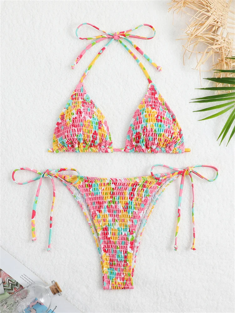 Sexy Micro Bikini 2024 Women Pink Floral Print Pleate Tie Side Triangle Swimsuit Brazilian Halter Push Up Bathing Suit Swimwear