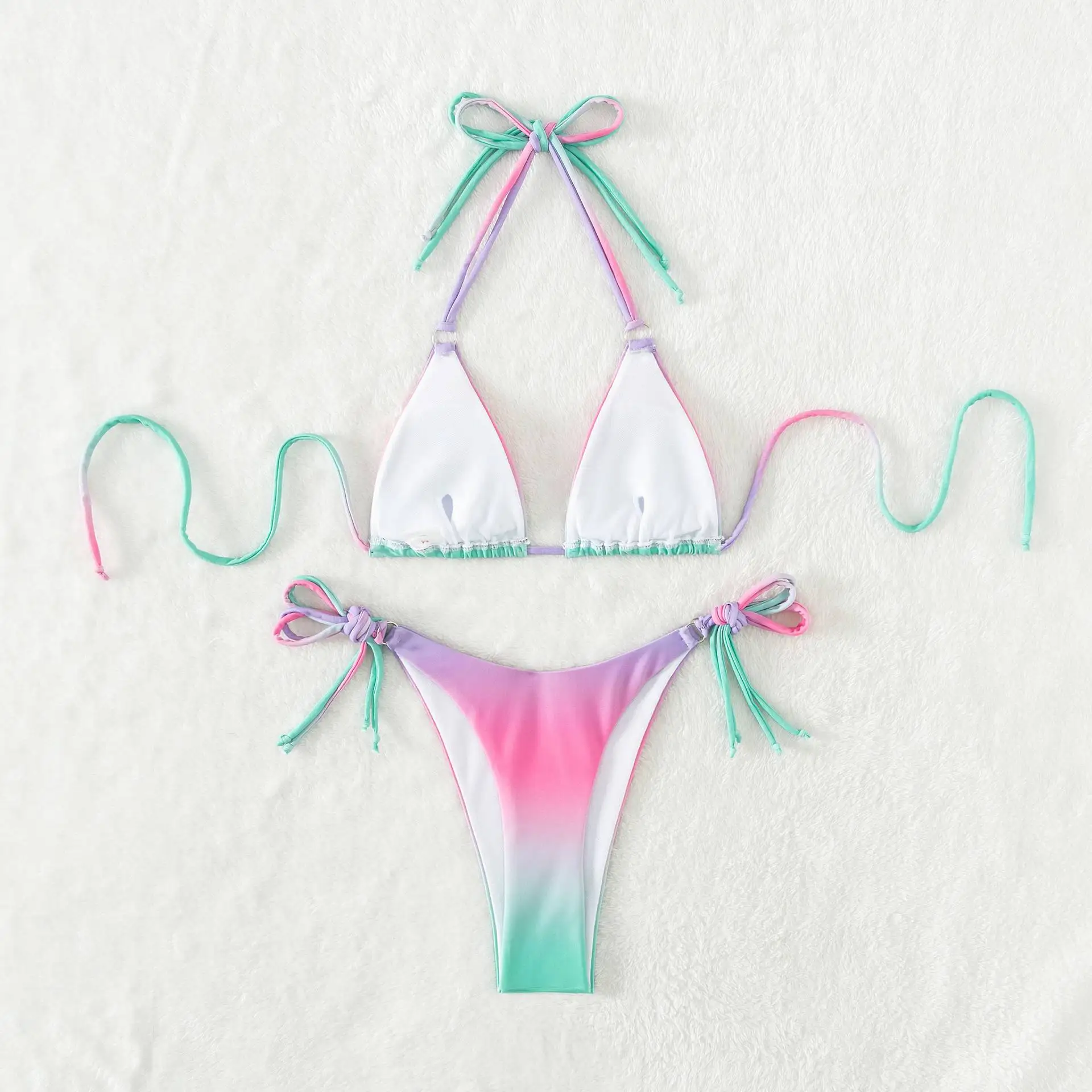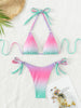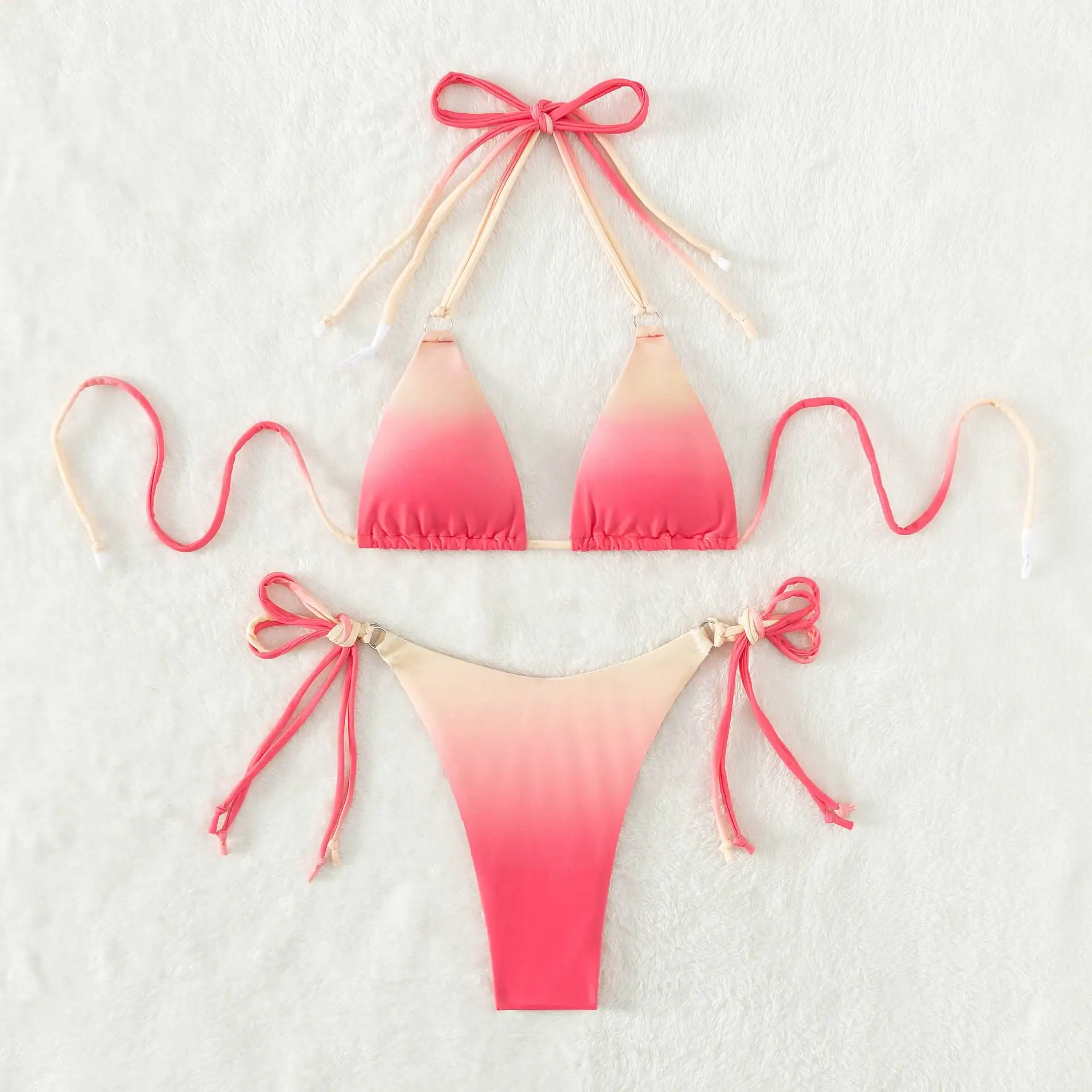 Sexy Micro Bikini 2024 Women Pink Gradient Push Up Bikinis Sets Biquini Ribbed Bathing Suit Tie Side Triangle Swimwear Beachwear