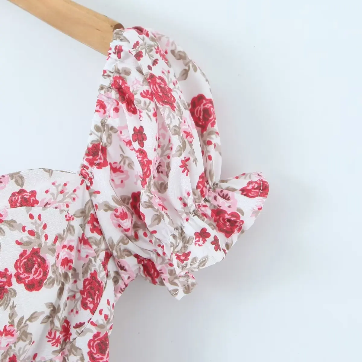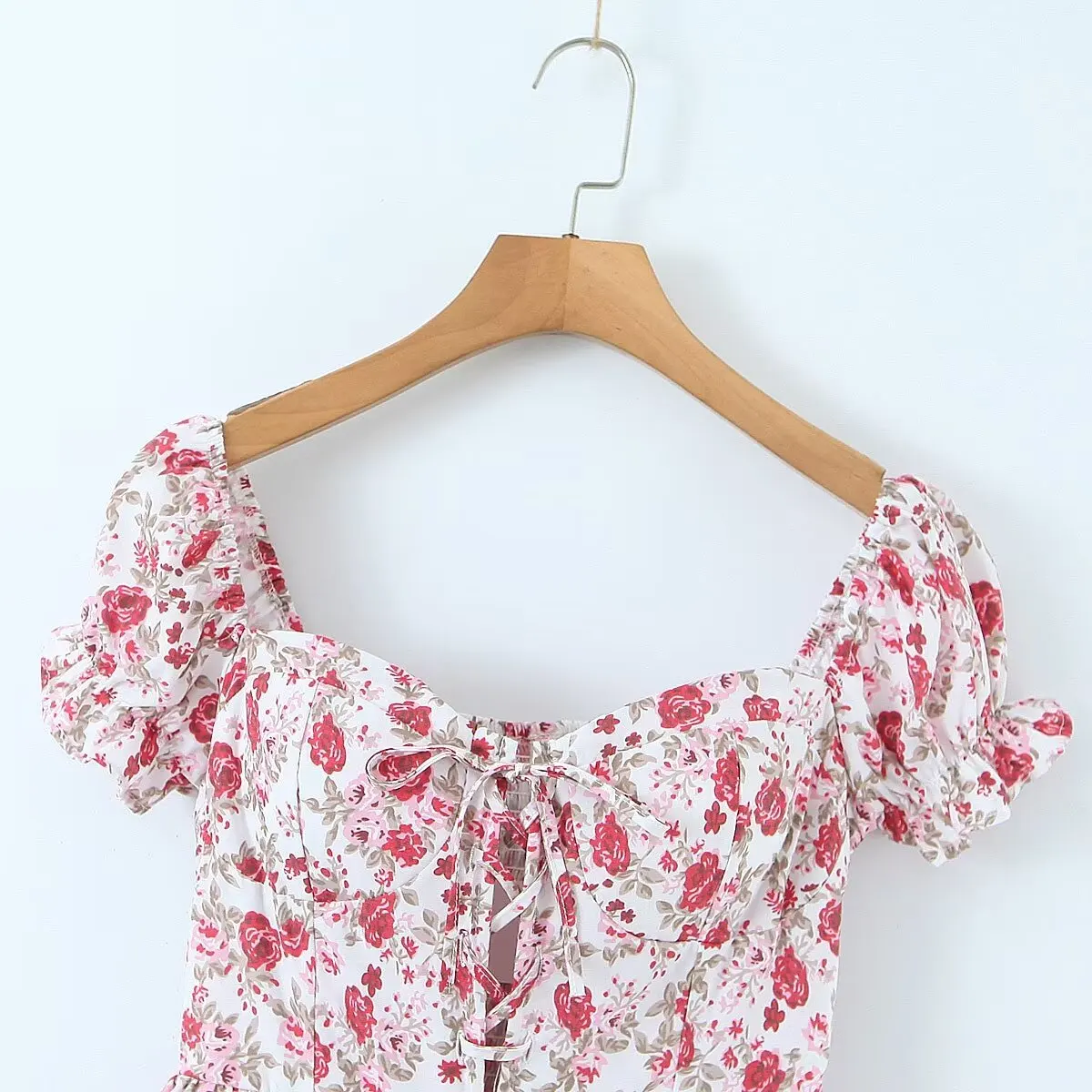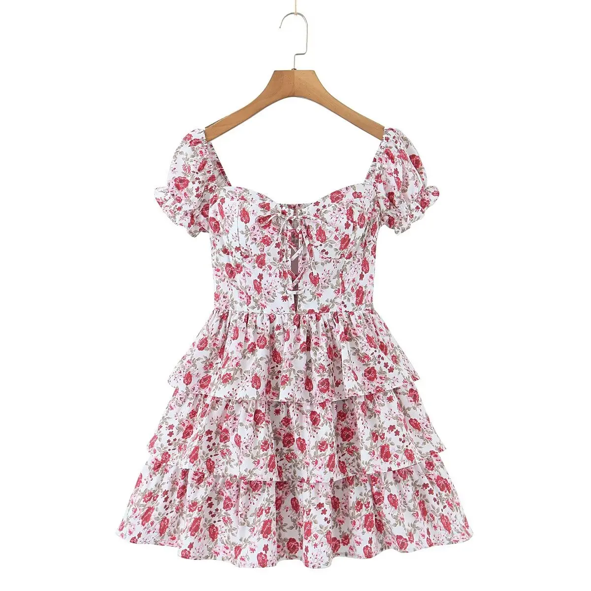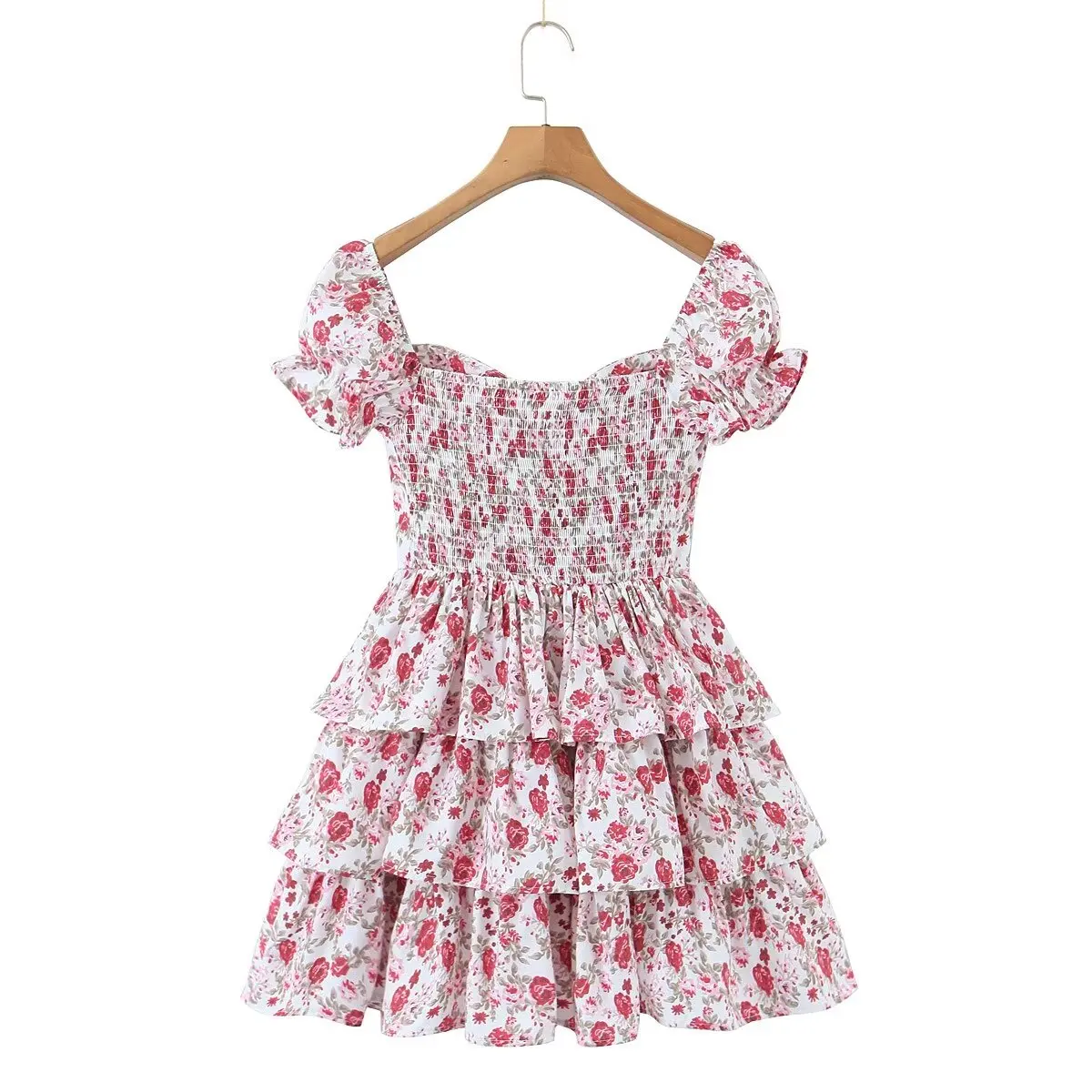 Sexy Off Shoulder Floral Print Cake Party Mini Dresses Women Short Sleeve Layered Holiday Summer Dress Beautiful Robe