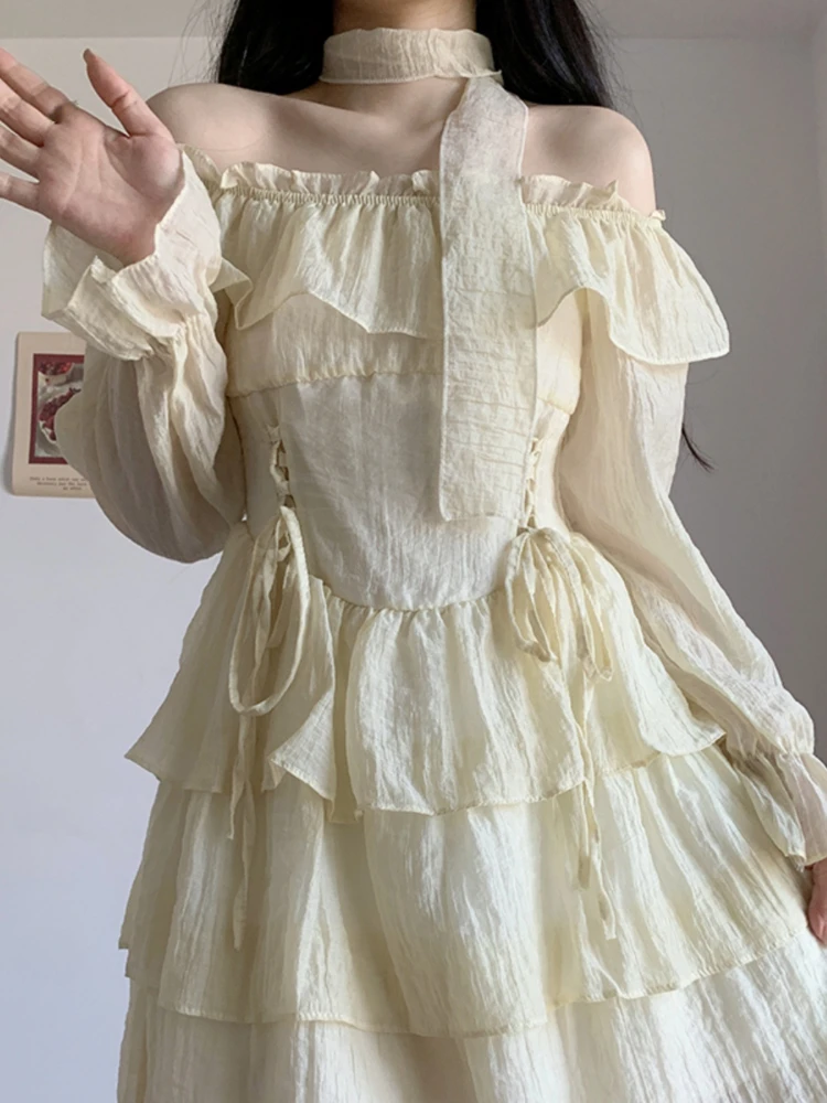 Summer Elegant Vintage Mini Dress Women Long Sleeve Outwear Party Formal Dress Office Lady Fairy Korean Dress Chic Fashion