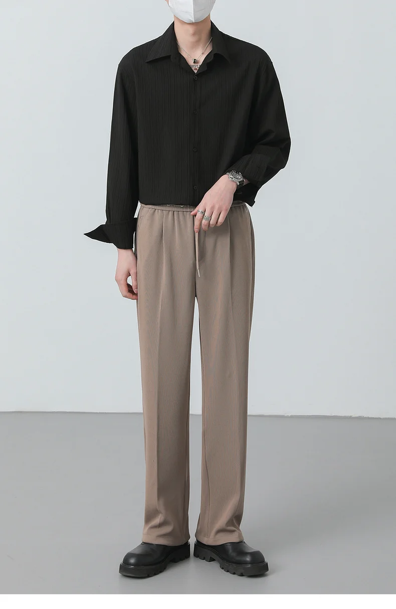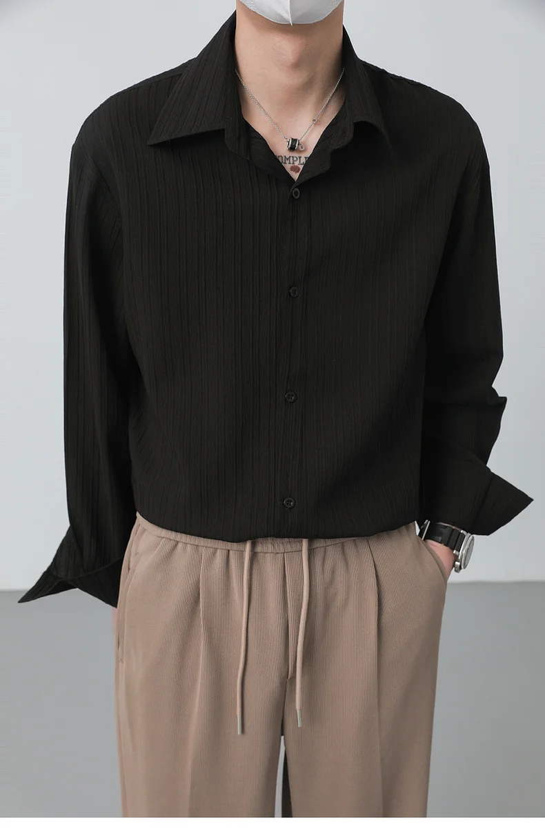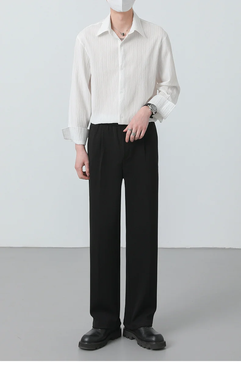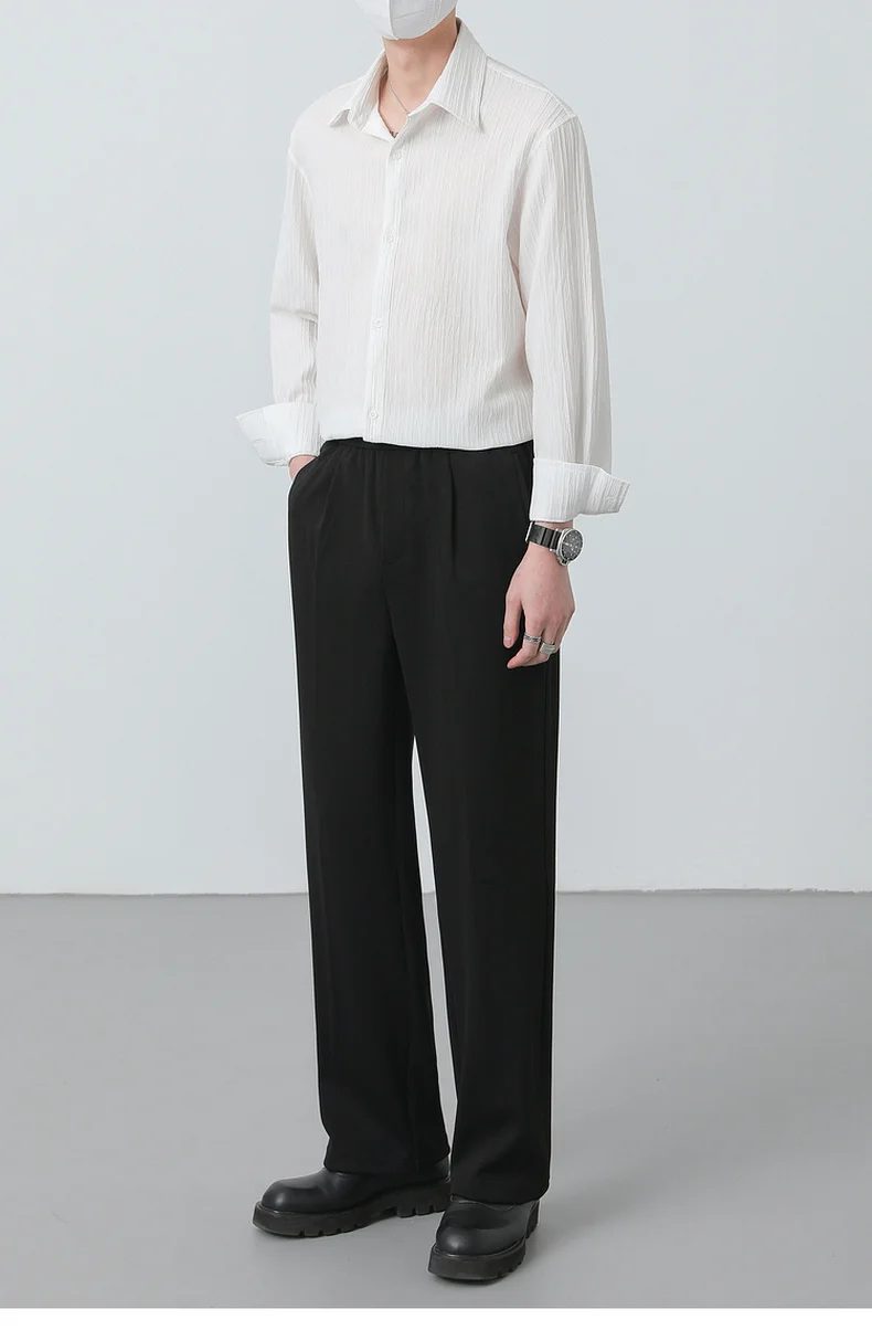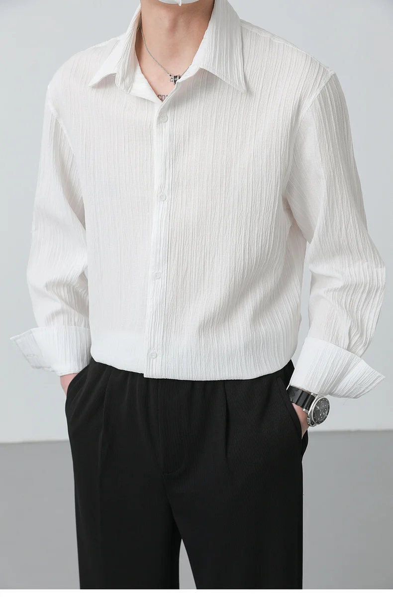 Summer Thin Shirt Men Slim Fit Fashion Social Men Dress Shirt Korean Casual White Long Sleeved Shirt Men Pleated Shirts M-2XL