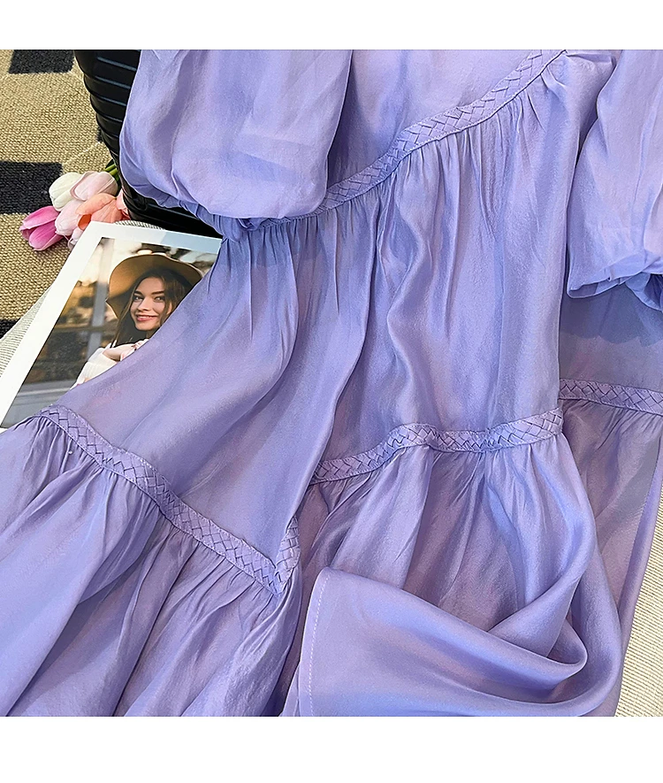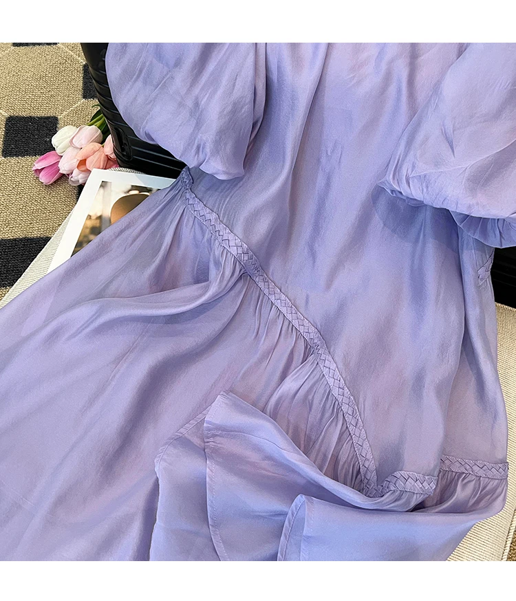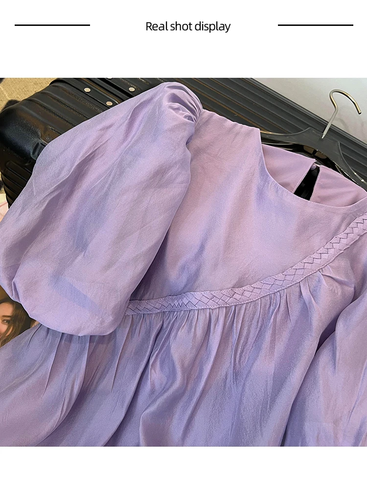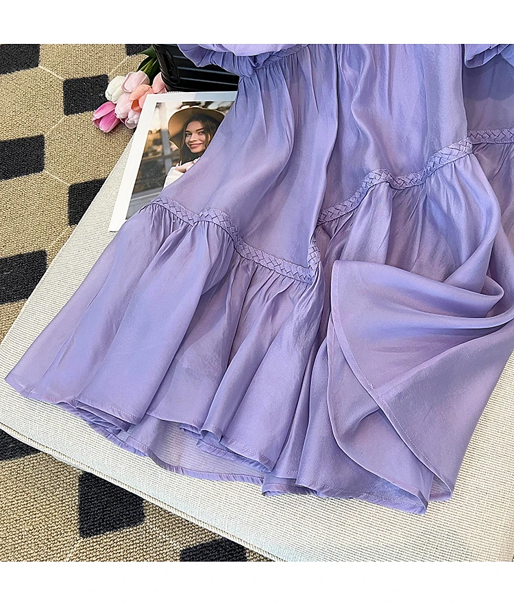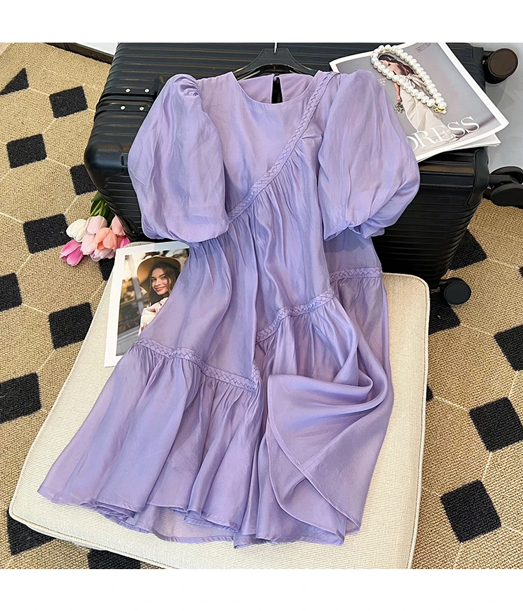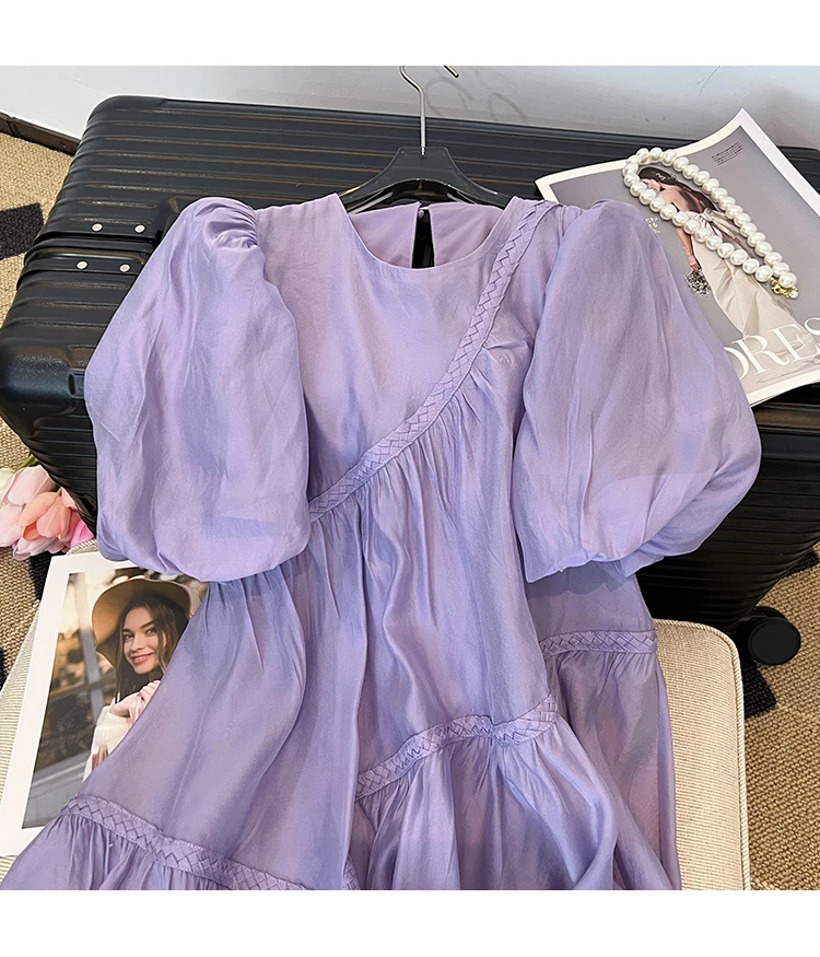 Voguable  Summer Women's Purple Short Bubble Sleeve Round Neck Elegant Dresses Spring Casual Loose Mini Dresses Ladies Clothing voguable