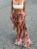 Vacation Floral Printed Ruffle Half Bodycon Skirt Low Waist Y2K Aesthetics Lace Skirt Harajuku Grunge Fairycore Clothes